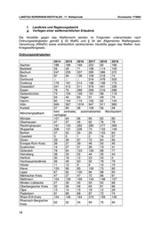 LANDTAG NORDRHEIN-WESTFALEN - 17. Wahlperiode Drucksache 17/9883 f. Landkreis und Regierungsbezirk g. Vorliegen einer waffenrechtlichen Erlaubnis Die Verstöße gegen das Waffenrecht werden im Folgenden unterschieden nach Ordnungswidrigkeiten gemäß § 53 WaffG und § 34 der Allgemeinen Waffengesetz- Verordnung (AWaffV) sowie strafrechtlich sanktionierten Verstöße gegen das Waffen- bzw. Kriegswaffengesetz. Ordnungswidrigkeiten 2014 2015 2016 2017 2018 2019 Aachen 188 186 169 222 92 166 Bielefeld 59 29 71 198 114 109 Bochum 247 235 337 395 386 372 Bonn 87 94 136 109 218 74 Dortmund ./. ./. ./. 516 478 525 Duisburg 176 181 214 198 198 172 Düsseldorf 341 412 511 576 401 336 Essen 78 75 268 256 216 268 Gelsenkirchen 74 124 149 161 98 119 Hagen 54 44 63 51 49 74 Hamm 80 104 115 100 82 124 Köln 849 567 1016 947 911 990 Krefeld 57 85 38 109 56 58 kein zentrales, automatisiertes Abrufsystem Mönchengladbach verfügbar Münster 107 84 66 85 62 80 Oberhausen 47 57 45 62 76 78 Recklinghausen 161 133 282 285 277 269 Wuppertal 208 131 226 73 133 149 Borken 37 52 53 20 103 63 Coesfeld 3 0 1 2 16 57 Düren 29 36 97 72 84 85 Ennepe-Ruhr-Kreis 38 21 39 46 50 45 Euskirchen 14 27 21 28 19 41 Gütersloh 78 64 123 126 88 77 Heinsberg 38 33 52 44 35 43 Herford 30 18 12 23 43 0 Hochsauerlandkreis 56 49 63 52 78 79 Höxter 11 13 9 6 10 15 Kleve 155 99 85 100 73 90 Lippe 67 62 100 94 98 50 Märkischer Kreis 47 27 47 72 86 61 Mettmann 104 139 165 143 148 107 Minden-Lübbecke 27 39 40 53 52 68 Oberbergischer Kreis 52 56 56 65 81 66 Olpe 13 14 15 19 12 29 Paderborn 61 68 68 67 72 74 Rhein-Erft-Kreis 124 146 164 215 159 130 Rheinisch-Bergischer 62 52 34 94 75 64 Kreis 18