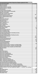 kurze Einzellader-Flinte 1 kurze kombinierte Waffe sonstige Einzelladerwaffe für Zentralfeuermunition 1 kurze Einzellader Pistole 4 sonstige Einzelladerwaffe für Randfeuermunition halbautomatische Büchse 471 Repetierbüchse 3965 Vorderschaftrepetierbüchse 7 Unterhebelrepetierbüchse 163 Repetierflinte 61 Vorderschaftrepetierflinte 64 Unterhebelrepetierflinte 4 halbautomatische Flinte 125 halbautomatische Pistole, Aussehen wie KWKG-Waffe halbautomatische Büchse, Aussehen wie KWKG-Waffe 1 halbautomatische Flinte, Aussehen wie KWKG-Waffe Bockbüchsflinte 523 Drilling 507 Vierling Zündnadel-Büchse Perkussions-Büchse 6 Perkussions-Doppelbüchse 3 Perkussions-Bockdoppelbüchse Perkussions-Büchsflinte Perkussions-Bockbüchsflinte 1 Perkussions-Drilling Stein-/ Radschloss-Büchse Stein-/ Radschloss-Doppelbüchse Stein-/ Radschloss-Bockdoppelbüchse Luntenschloss-Büchse (gezogener Lauf) Druckluft-/CO2-Gewehr (erlaubnispflichtig) 108 Druckluft-/CO2-Gewehr mit "F im Fünfeck" (erlaubnisfrei) 26 Druckluft-/CO2-Gewehr ohne "F im Fünfeck" (erlaubnisfrei) 10 halbautomatische Büchse (fest eingebautes Magazin <= 2 Patronen) 67 halbautomatische Flinte (fest eingebautes Magazin <= 2 Patronen und Lauflänge > 60cm) 57 Einzellader Büchse 1369 Doppelbüchse 32 Bockdoppelbüchse 66 Einzellader Flinte 344 Doppelflinte 836 Bockdoppelflinte 1655 Schrotdrilling Zündnadel-Flinte 1 Zündnadel-Doppelflinte Perkussions-Flinte 1 Perkussions-Doppelflinte 9 Perkussions-Bockdoppelflinte Stein-/ Radschloss-Flinte Luntenschloss-Büchse (glatter Lauf) Druckluft-/ Federdruck-/ CO2-Kurzwaffe (erlaubnispflichtig) 6 Druckluft-/ Federdruck-/ CO2-Kurzwaffe mit "F im Fünfeck" (erlaubnisfrei) 5 Druckluft-/ Federdruck-/ CO2-Kurzwaffe ohne "F im Fünfeck" (erlaubnisfrei) 1 Zündnadel-Pistole n/a Perkussions-Pistole 4 Steinschloss-Pistole Steinschloss-Revolver Schreckschuss-, Reizstoff- und Signalwaffe mit "PTB im Kreis" 5 Salutgewehr mit "Zulassungszeichen in der Raute" Modellkanone sonstige erlaubnispflichtige Waffe 62 sonstige erlaubnisfreie Waffe 3 Büchsflinte 26 mehrläufige Repetierbüchse halbautomatische Bockbüchsflinte Signalgewehr Erstanlieferung und Teilanlieferung 5