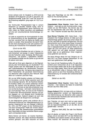 Landtag 12.03.2020 Nordrhein-Westfalen 103 Plenarprotokoll 17/84 Ich will noch einen etwas anderen Akzent in Bezug Vizepräsident Oliver Keymis: Vielen Dank, Frau auf die Sicherheit auf öffentlichen Plätzen und in öf- Schäffer. – Es spricht der Innenminister, Herr Reul. fentlichen Räumen setzen. Die Landesregierung be- schreibt ja in der Antwort, dass es darum geht, mit *) Herbert Reul , Minister des Innern: Herr Präsident! verschiedenen Akteuren vor Ort zusammenzuarbei- ten, dass es auch darum geht, Präventionsmaßnah- Meine Damen und Herren Abgeordnete! Diesen gu- men an diesen Orten, an diesen Örtlichkeiten durch- ten Wünschen, dass wir uns bitte gesund wiederse- hen, möchte ich mich anschließen. Man weiß es ja zuführen, und dass es auch um Präsenzkonzepte im Moment nicht so ganz genau. geht. Die Beantwortung der Großen Anfrage 2 hat ganz Ich finde, das ist doch eigentlich eine sehr gute Wer- bung für unsere Anhörung, die wir nächsten Don- viele Aspekte. Wir reden aber im Grunde nur über nerstag im Innenausschuss durchführen werden. Wir ein, zwei Aspekte. Grüne haben einen Antrag zur sozialraumorientier- Die AfD hat in den Mittelpunkt ihrer Ausführungen ten Polizeiarbeit eingebracht. Dieser Begriff ist ein heute das Verfassungsgerichtsurteil gestellt. Das bisschen sperrig. Es geht um den klassischen Be- kann ich auch verstehen. Dieses hat sich am 28.01. zirksbeamten oder die Bezirksbeamtin. Es geht da- mit der Frage beschäftigt, unter welchen Vorausset- rum, dass wir vor Ort Präsenz zeigen wollen. Bezirks- zungen die Landesregierung eine Antwort aus- beamte zeichnen sich dadurch aus, dass sie mit ver- nahmsweise nicht erteilen muss. Deswegen will ich schiedenen Akteuren vor Ort in Kontakt treten, mit auch darauf eingehen. Denn das ist zwar in der Sa- den Geschäftstreibenden, mit Sozialarbeit, mit den che vielleicht nicht das Wichtigste, aber von der AfD verschiedenen städtischen Stellen, Ordnungsamt, zum Thema gemacht worden. Es geht auch um die Jugendamt, also mit allen Akteuren, die an einem Frage, unter welchen Voraussetzungen die Antwort Platz eine Rolle spielen und auch eingebunden wer- in geheimer bzw. nichtöffentlicher Sitzung erteilt wer- den müssen. den darf. Wir wissen, dass diese Bezirksbeamten es schaffen, Anlass war die geforderte Offenlegung von vermeint- die Kriminalität effektiv zu senken, wenn sie vor Ort lich gefährlichen und verrufenen Orten, an denen präsent und ansprechbar sind. Sie können eine an- verdachtsunabhängig Polizeikontrollen erfolgen kön- dere Ansprechbarkeit erzeugen, als zum Beispiel die nen. Hundertschaften es können, weil es sich immer um dieselben Leute handelt und sie vor Ort bekannt sind. Vielleicht das vorneweg: Sie wissen, dass für mich und für alle anderen Mitglieder der Landesregierung Es gibt wissenschaftliche Untersuchungen aus Köln. das Informationsrecht der Abgeordneten dieses In den 2000er-Jahren hat das Polizeipräsidium Köln Hauses einen hohen Stellenwert hat, für mich auch ganz bewusst auf die Stärkung der Bezirksbeamten deshalb, weil ich lange, lange Zeit selbst Abgeordne- gesetzt. Man hat das wissenschaftlich untersucht ter war. Das ist selbstverständlich. Darin stimme ich und konnte wissenschaftlich darlegen, dass die Stra- auch mit dem Verfassungsgerichtshof vollkommen ßenkriminalität und auch die Kriminalität durch Ju- überein. gendliche effektiv gesenkt wurden. Dazu haben wir einen Antrag eingebracht. Ich finde, der passt sehr Ich persönlich habe mich in der Vergangenheit im- gut zu diesem Thema. Wir werden am Donnerstag mer wieder für größtmögliche Transparenz einge- auch eine Anhörung dazu durchführen. setzt – das merkt man, glaube ich –, im Innenaus- schuss, in den Untersuchungsausschüssen und Ich würde mich sehr freuen, wenn sich im Sinne einer auch jetzt bei der Antwort auf die Große Anfrage. Es effektiven Kriminalprävention die anderen Fraktionen ist richtig: 485 Seiten bedeuten, dass wir die Antwor- dazu durchringen könnten, diesem Antrag zuzustim- ten, die wir geben konnten, gegeben haben. men. Ich meine, dass das für die Polizeiarbeit in Nordrhein-Westfalen wirklich gut wäre. An einer Stelle waren wir anderer Meinung, nämlich bezüglich der Nichtöffentlichkeit. Wir haben übrigens Insofern ein Werbeblock für dieses Thema: Kommen auch das Angebot gemacht, diese Antwort nichtöf- Sie am Donnerstag zu unserer Anhörung. Stimmen fentlich zu geben. Das ist aber nicht angenommen Sie nachher unserem Antrag zu. Damit tun wir etwas worden. Dann ist es zu der Entscheidung des Ge- gegen die Kriminalität in Nordrhein-Westfalen und richts gekommen. stärken unsere Polizei. Ich will übrigens nicht versäumen, zu erwähnen, Ich wünsche Ihnen heute noch einen guten Abend, dass das grundsätzlich bestehende Frage- und Infor- bleiben Sie unbedingt gesund, damit wir uns im April mationsrecht von Abgeordneten auch verfassungs- hier wiedersehen. Bis dann, tschüss. rechtlichen Beschränkungen unterliegen kann. Der Verfassungsgerichtshof hat dazu ausgeführt, dass (Beifall von den GRÜNEN und der SPD) das zum Beispiel bei betroffenen Grundrechten pri- vater Dritter und bei dem Gebot gegenseitiger Rück- sichtnahme im Verhältnis der Staatsorgane zueinan-