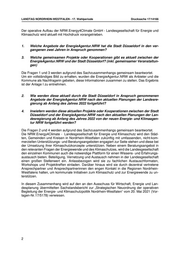LANDTAG NORDRHEIN-WESTFALEN - 17. Wahlperiode Drucksache 17/14166 Der operative Aufbau der NRW.Energy4Climate GmbH - Landesgesellschaft für Energie und Klimaschutz wird aktuell mit Hochdruck vorangetrieben. 1. Welche Angebote der EnergieAgentur.NRW hat die Stadt Düsseldorf in den ver- gangenen zwei Jahren in Anspruch genommen? 3. Welche gemeinsamen Projekte oder Kooperationen gibt es aktuell zwischen der EnergieAgentur.NRW und der Stadt Düsseldorf? (inkl. gemeinsamer Veranstaltun- gen) Die Fragen 1 und 3 werden aufgrund des Sachzusammenhangs gemeinsam beantwortet. Um ein vollständiges Bild zu erhalten, wurden die EnergieAgentur.NRW als Anbieter und die Kommune als Nachfragerin gebeten, diese Informationen zusammen zu stellen. Das Ergebnis ist der Anlage I zu entnehmen. 2. Wie werden diese aktuell durch die Stadt Düsseldorf in Anspruch genommenen Angebote der EnergieAgentur.NRW nach den aktuellen Planungen der Landesre- gierung ab Anfang des Jahres 2022 fortgeführt? 4. Inwiefern werden diese aktuellen Projekte oder Kooperationen zwischen der Stadt Düsseldorf und der EnergieAgentur.NRW nach den aktuellen Planungen der Lan- desregierung ab Anfang des Jahres 2022 von der neuen Energie- und Klimaagen- tur NRW fortgeführt werden? Die Fragen 2 und 4 werden aufgrund des Sachzusammenhangs gemeinsam beantwortet. Die NRW.Energy4Climate - Landesgesellschaft für Energie und Klimaschutz wird den Städ- ten, Gemeinden und Kreisen in Nordrhein-Westfalen zukünftig mit umfassenden, nicht-kom- merziellen Unterstützungs- und Beratungsangeboten engagiert zur Seite stehen und diese bei der Umsetzung ihrer Klimaschutzkonzepte unterstützen. Neben einem Beratungsangebot in den relevanten Fragen der Energiewende und des Klimaschutzes, wird die Landesgesellschaft den einzelnen Kommunen auch die notwendige Plattform für einen Wissens- und Erfahrungs- austausch bieten. Beteiligung, Vernetzung und Austausch nehmen in der Landesgesellschaft einen großen Stellenwert ein. Anlassbezogen wird sie zu fachlichen Austauschformaten, Workshops und Projekttreffen einladen. Darüber hinaus wird sie durch dezentral vertretene Ansprechpartner und Ansprechpartnerinnen den engen Kontakt in die Regionen Nordrhein- Westfalens halten, um kommunale Initiativen zum Klimaschutz und zur Energiewende zu un- terstützen. In diesem Zusammenhang wird auf den an den Ausschuss für Wirtschaft, Energie und Lan- desplanung übermittelten Sachstandsbericht zur „Strategischen Neuordnung der operativen Begleitung der Energie- und Klimaschutzpolitik Nordrhein-Westfalen“ vom 20. Mai 2021 (Vor- lagen-Nr.17/5178) verwiesen. 2
