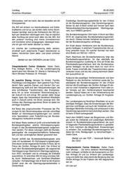 Landtag 26.08.2020 Nordrhein-Westfalen 122 Plenarprotokoll 17/97 dass sich das Konzept der Kollegin Müller-Rech „Wir der Landesregierung beenden einfach die Pandemie“ so leicht nicht um- Drucksache 17/10189 setzen lassen wird. (Zurufe von der CDU und der FDP) Die Aussprache eröffnet für die AfD-Fraktion Herr Kollege Loose. Daher muss es Vorstellungen geben, wie Gesund- heitsschutz und gutes Lernen in Einklang zu bringen sind. Christian Loose (AfD): Sehr geehrte Frau Präsiden- tin! Meine sehr geehrten Damen und Herren! 400 (Franziska Müller-Rech [FDP]: Wenn Sie nicht Reihenhäuser könnten auf der Fläche gebaut wer- mitmachen, kann ich Ihnen auch nicht hel- den, wo demnächst in Osterath in Neuss ein Konver- fen! – Weitere Zurufe von der CDU und der ter stehen soll. Das alles geschieht, weil man medi- FDP – Glocke – Michael Hübner [SPD]: Was enwirksam die Kernkraftwerke im Süden abgeschal- sollen denn Ihre Zwischenrufe? Mal ganz ehr- tet hat und nun Strom braucht. Deshalb braucht man lich! – Gegenruf von Franziska Müller-Rech auch eine Stromleitung. [FDP]: Das müssen Sie gerade sagen!) Man könnte nun einfach Strom aus Braunkohlekraft- werken im Rheinischen Revier nehmen. Dazu Vizepräsidentin Carina Gödecke: Eigentlich bräuchte man nicht einmal einen Konverter. möchte die Ministerin jetzt antworten. Aber die von der Regierung geplante Stromleitung soll auch den Strom von Hunderten von Windindust- Yvonne Gebauer, Ministerin für Schule und Bildung: rieanlagen von der Nordsee in den Süden transpor- Frau Präsidentin! Meine Damen und Herren! Liebe tieren. Doch es wird befürchtet, dass gegen diese Frau Beer, ich habe leider nicht alles von dem ver- Leitung genau die gleichen Leute demonstrieren standen, was Sie gesagt haben, werden, die schon wegen der Kernkraftwerke und (Beifall von der CDU und der FDP) der Kohlekraftwerke auf der Straße waren. Deshalb soll das Ganze mit Erde zugedeckt werden, das aber eines konnte ich verstehen: Sie haben gefragt, heißt, es soll ein Erdkabel verlegt werden, denn die wann ich verkünde. Ich kann Ihnen sagen: Wenn die Regierung möchte solche unschönen Bilder vermei- Entscheidung gefallen ist, dann verkünde ich auch, den. und das rechtzeitig. Aber wozu braucht es dann einen Konverter in Os- (Beifall von der CDU und der FDP) terath? Schließlich könne man immer noch den Strom von Emden aus bis nach Baden-Württemberg einfach durchleiten. Die Energiewendeträumer fin- Vizepräsidentin Carina Gödecke: Damit sind wir den Windindustrieanlagen in und an der Nordsee am Ende der Aussprache zu Tagesordnungs- zwar ganz klasse, aber der Wind weht nicht stetig, punkt 12 angelangt. und man braucht auch dann Strom im Süden, wenn Wir kommen zur Abstimmung. Die antragstellenden der Wind stillsteht. Deshalb soll der Braunkohlestrom Fraktionen von SPD und Bündnis 90/Die Grünen ha- jetzt zugeführt werden, damit die Versorgungssicher- ben direkte Abstimmung beantragt. Wer also dem In- heit garantiert wird, wenn der Wind stillsteht. halt des Antrages Drucksache 17/10630 zustimmen Es ist halt dumm, dort Windindustrieanlagen hinzu- möchte, den bitte ich um das Handzeichen. – Das bauen, wo kein Stromabnehmer vorhanden ist und sind die antragstellenden Fraktionen SPD und Bünd- auch keine Leitung liegt. So gab es dort oben auch nis 90/Die Grünen. Wer stimmt dagegen? – CDU, schon 2017 Engpässe. Windindustrieanlagen an der FDP, AfD und die beiden fraktionslosen Abgeordne- Nordsee wurden nicht mehr ans Netz angeschlossen ten Langguth und Neppe. Möchte sich jemand ent- oder aus dem Wind gedreht. halten? – Das ist nicht der Fall. Dann ist der Antrag Drucksache 17/10630 mit dem festgestellten Ab- Für die Eigentümer war das übrigens kein Problem. stimmungsergebnis abgelehnt worden. Sie bekommen trotzdem Geld, zum Beispiel über die Offshore-Haftungsumlage. Da gibt es dann Geld für Ich rufe auf: Strom, der nie produziert wurde. Daher sprechen viele Leute in diesem Fall auch von Fake-Strom. Be- 13 Sachstand „Windstrom“anbindung NRW und zahlt wird dieser Irrsinn natürlich von den Fleißigen „Windstrom“verbindung durch NRW hindurch in Deutschland, über ihre Abgaben beim Strom. Üb- rigens bekommt eine Kellnerin oder aber eine Frisö- Große Anfrage 24 rin oder ein Frisör kein Geld, wenn keine Leistung er- der Fraktion der AfD bracht wurde. Drucksache 17/9125 Nun gut, jetzt ist der Strom halt da, und jetzt müssen Antwort wir ihn irgendwie integrieren.