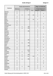 Große Anfrage 4 Anlage II.7 Zweites Geschwisterkind Pflege- und Stiefkinder Kommune Befreiung Ermäßigung Analoge Regelung für % Euro Pflegekind Stiefkind Lemgo X X Lengerich X X Lennestadt X 25% X X Leverkusen X X X Lienen X 50% X X Lippstadt X X X Löhne X X X Lübbecke X 40 € X Lüdenscheid X X X Lüdinghausen X X X Lünen X X X Marienheide X X Marienmünster X X X Marsberg X X Mechernich X 50% X X Meckenheim X X X Medebach X X Meerbusch X X Meinerzhagen X 50% X Menden X X X Meschede X X Metelen X 60% 10 € X Mettingen X 50% X X Mettmann X Minden X X X Moers X X X Möhnesee X 50% Monheim Monschau X X Morsbach X 25% X X Much X 25% Mülheim an der Ruhr X Münster X X X Nachrodt-Wiblingw. X 50% X X Netphen X X X Nettetal X 50% Neuenkirchen X Neunkirchen-Seel. X 50% X X Neuenrade X 50% Neunkirchen X X 50 € Quelle: Befragung der Schulverwaltungsämter in NRW, 2018 312 von 359