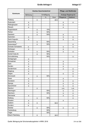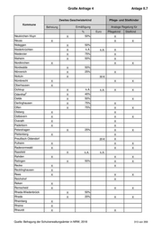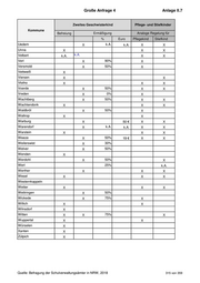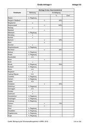 Große Anfrage 4 Anlage II.7 Anmerkungen der Kommunen 1 Erkelenz : Der monatliche Beitrag zur OGS-Teilnahme ist für das erste und jedes weitere Geschwisterkind auf 20 Euro (Mindestbeitrag) festgeschrieben. 2 Hennef : Ab dem 3. Kind beträgt die Beitragsermäßigung 75 Prozent. Die Pflegekinder werden jeweils in der zweiten Einkommensstufe eingestuft. 3 Odenthal : Die Ermäßigung für Geschwisterkinder wird ab der Einkommensstufe 4 gestaffelt. Bis zu dieser Einkommensstufe sind Geschwisterkinder vom Elternbeitrag befreit. 4 Schermbeck : Die Pflegeeltern eines OGS-Pflegekindes werden automatisch (ohne Einkommensprüfung) in die erste kostenpflichtige Stufe eingruppiert. Es sei denn, es wird ein geringeres Einkommen unter 12.271 Euro nachgewiesen. 5 Telgte : Ab dem dritten Kind gibt es eine vollständige Ermäßigung des Elternbeitrages. Quelle: Befragung der Schulverwaltungsämter in NRW, 2018 316 von 359