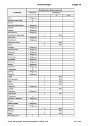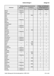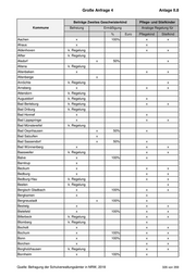 Große Anfrage 4 Anlage II.8 Beiträge Erstes Geschwisterkind Kommune Befreiung Ermäßigung % Euro Much k. Regelung Mülheim an der Ruhr x Münster x Nachrodt-Wiblingwerde k. Regelung Netphen k. Regelung Nettetal k. Regelung Neuenkirchen k. Regelung Neunkirchen-Seelscheid x 50% Neuenrade k. Regelung Neunkirchen k. Regelung Neukirchen-Vluyn x 50% Neuss x 50% Nideggen k. Regelung Niederkrüchten k. Regelung Niederzier k. Regelung Nieheim k. Regelung Nordkirchen k. Regelung Nordwalde k. Regelung Nörvenich k. Regelung Nottuln k. Regelung Nümbrecht k. Regelung Oberhausen x Ochtrup k. Regelung Odenthal k. Regelung Oelde x 50% Oerlinghausen x 50% Olfen x 75% Olsberg x 50% Ostbevern k. Regelung Overath x 66% Paderborn k. Regelung Petershagen x 25% Plettenberg x Preußisch Oldendorf k. Regelung Pulheim x Radevormwald k. Regelung Raesfeld k. Regelung Rahden x 50% Ratingen x 50% Recke x 50% Recklinghausen x Quelle: Befragung der Schulverwaltungsämter in NRW, 2018 322 von 359