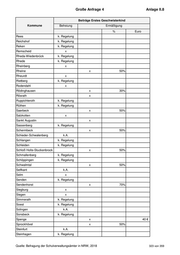 Große Anfrage 4 Anlage II.8 Beiträge Zweites Geschwisterkind Pflege- und Stiefkinder Kommune Befreiung Ermäßigung Analoge Regelung für % Euro Pflegekind Stiefkind Bottrop k. Regelung x x Brakel k. Regelung x Breckerfeld k.A. k.A. k.A. Brilon x 100% x x Brühl x Bünde x x Burbach k. Regelung Büren x x Bergheim x x x Castrop-Rauxel x x Coesfeld k. Regelung x x Dahlem k. Regelung x Datteln x x Dinslaken x 50% x Dörentrup k. Regelung x Dormagen x x x Dorsten x x Dortmund x x x Drensteinfurt k. Regelung Drolshagen k. Regelung x x Duisburg k. Regelung x x Dülmen x 75% x Düren x 100% x x Eitorf x 30% x Emsdetten x x x Engelskirchen k. Regelung Enger k. Regelung x x Ennepetal k. Regelung Ennigerloh x 100% Ense x 50% x x Erkelenz k. Regelung Erkrath x x x Erwitte x 50% x Eschweiler x x x Eslohe x 100% x x Espelkamp k. Regelung x Essen x 100% x Euskirchen k. Regelung x x Everswinkel x 100% x Extertal k. Regelung Finnetrop k. Regelung Quelle: Befragung der Schulverwaltungsämter in NRW, 2018 327 von 359