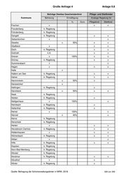 Große Anfrage 4 Anlage II.8 Beiträge Erstes Geschwisterkind Kommune Befreiung Ermäßigung % Euro Rees k. Regelung Reichshof k. Regelung Reken k. Regelung Remscheid x Rheda-Wiedenbrück k. Regelung Rhede k. Regelung Rheinberg x Rheine x 50% Rheurdt x Rietberg k. Regelung Rodendahl x Rödinghausen x 30% Rösrath x Ruppichteroth k. Regelung Rüthen k. Regelung Saerbeck x 50% Salzkotten x Sankt Augustin x Sassenberg k. Regelung Schermbeck x 50% Schieder-Schwalenberg k.A. Schlangen k. Regelung Schleiden k. Regelung Schloß Holte-Stuckenbrock x 50% Schmallenberg k. Regelung Schöppingen k. Regelung Schwalmtal x 50% Selfkant k.A. Selm x Senden k. Regelung Sendenhorst x 70% Siegburg x Siegen x Simmerath k. Regelung Soest k. Regelung Solingen k.A. Sonsbeck k. Regelung Spenge x 40 € Sprockhövel x 50% Steinfurt k.A. Steinhagen k. Regelung Quelle: Befragung der Schulverwaltungsämter in NRW, 2018 323 von 359