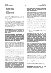 Landtag 26.06.2019 Nordrhein-Westfalen 121 Plenarprotokoll 17/60 Ich habe gerade nochmals in meinen Unterlagen Abwesenheit des Ministerpräsidenten bei jedem me- nachgeschaut, ob der zuständige Medienminister – dienpolitischen Debattenpunkt in den letzten Mona- was ja der Ministerpräsident ist – heute entschuldigt ten. – Vielen Dank. ist. (Beifall von der SPD – Zurufe von der CDU (Zurufe von der CDU: Ach!) und der FDP) Er ist offenkundig nicht entschuldigt, und ich finde das angesichts der Beantwortung einer Großen An- Vizepräsidentin Angela Freimuth: Vielen Dank, frage durch die Landesregierung – da Sie schon ein- Herr Abgeordneter Vogt. – Für die CDU hat Frau Kol- mal deutlich gemacht haben, dass die eine oder an- legin Stullich das Wort. dere Frage eher sachfremd beantwortet wurde – ehr- (Zurufe) lich gesagt nicht angemessen. – Liebe Kolleginnen und Kollegen, ich kann nur da- (Vereinzelt Beifall von der SPD) rauf hinweisen, dass gleich für die Landesregierung Wie schätzen Sie das wiederholte Fehlen des zu- Frau Ministerin Heinen-Esser in Vertretung für Herrn ständigen Ministerpräsidenten in der Frage der Me- Ministerpräsident Laschet sprechen wird. dien ein? (Beifall von der CDU und der FDP – Weitere Zurufe von der SPD) Alexander Vogt (SPD): Wir können an der Abwe- – Ich schlage vor, dass wir das nach den Spielregeln senheit des zuständigen Medienministers Herrn La- handhaben, die wir uns selbst gegeben haben. Auch schet, aber auch des für Medien zuständigen Staats- der Kollege Hübner weiß, wie sich das mit den Zwi- sekretärs wieder einmal sehen, dass dieses Thema schenfragen verhält. Jetzt hat Frau Kollegin Stullich dem Ministerpräsidenten entweder egal oder er mit das Wort. dem Termin überfordert ist. Wir haben es nicht organisiert, dass der Ministerprä- Andrea Stullich (CDU): Vielen Dank. – Sehr geehrte sident gleichzeitig Medienminister sein muss, Frau Präsidentin! Liebe Kolleginnen und Kollegen! Lieber Kollege Vogt, Sie fordern immer die Anwesen- (Beifall von der SPD) heit des Ministerpräsidenten sondern ich erinnere nochmals daran: Es gab einen (Alexander Vogt [SPD]: Des Medienministers! – Medienminister, Herrn Holthoff-Pförtner, der unter Michael Hübner [SPD]: Ist er denn entschuldigt?) anderem Anteilseigner der Funke-Mediengruppe ist, die zwölf Radiosender, über die wir gerade gespro- und behaupten, die Medienpolitik sei ihm nicht wich- chen haben, als Hauptanteilseigner hält. tig. (Stefan Kämmerling [SPD]: Praktisch!) Ich schaue einmal zurück, wie wichtig Ihnen eigent- lich die strukturelle Weiterentwicklung des Zweisäu- Natürlich war es eine schlechte Entscheidung, einen lenmodells in den letzten Jahren gewesen ist. Seit es der Hauptanteilseigner eines der größten Medien- das Zweisäulenmodell gibt, seit 1990, haben rote konzerne in Nordrhein-Westfalen gleichzeitig zum und rot-grüne Regierungen 22 Regierungsjahre ver- Medienminister zu machen; darum musste Herr Holt- bracht. In dieser Zeit habe Sie nichts, aber auch gar hoff-Pförtner anderweitig versorgt werden, nichts dafür getan, das Zweisäulenmodell strukturell (Zurufe von Thomas Nückel [FDP] und Hen- weiterzuentwickeln. ning Höne [FDP] – Josef Hovenjürgen [CDU]: (Beifall von der CDU und der FDP) Das ist doch albern! – Zuruf von der SPD: Wo ist er denn?) Ich würde Ihnen empfehlen, den Ball hier ziemlich flach zu halten. und Herr Laschet hat es übernommen. Liebe Kolleginnen und Kollegen, 112 Fragen um- Aber wir stellen uns jedes Mal die Frage, warum – fasst diese Große Anfrage. Da ist naturgemäß viel Herr Höne, Ihnen war die Situation auch peinlich; das Statistik dabei, vieles auch, was man durch eine ein- wussten wir doch – der zuständige Medienminister fache Onlinerecherche selbst hätte herausfinden nicht in der Lage ist, zu den medienpolitischen Punk- können. Inhaltlich geht es unter anderem um Ein- ten hier im Plenum zu erscheinen. schaltquoten und Personal, um Verbreitung und Fre- quenzen, um DAB+ und Bürgerfunk. (Beifall von der SPD) Unter den 112 Fragen stellt die SPD eine entschei- Das sagt einiges darüber aus, welchen Wert der Mi- dende Frage jedoch nicht, nämlich: nisterpräsident dem Medienland Nordrhein-Westfa- len beimisst. Ich glaube, das zeigt nicht nur die Ant- (Stefan Kämmerling [SPD]: Ja, wo ist der Mi- wort auf diese Anfrage, sondern auch die dauernde nisterpräsident? – Heiterkeit von der SPD)
