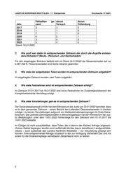 LANDTAG NORDRHEIN-WESTFALEN - 17. Wahlperiode Drucksache 17/16461 Fallzahlen ge- davon davon Jahr samt Versuch Vollendung 2017 3 3 0 2018 1 1 0 2019 7 1 6 2020 6 5 1 2021 3 0 3 2022 0 0 0 Stand: 16.01.2022 2. Wie groß war dabei im entsprechenden Zeitraum der durch die Angriffe entstan- dene Schaden? (Beute-, Personen- und Sachschäden) Für den angefragten Zeitraum beläuft sich mit Stand 16.01.2022 der Gesamtschaden auf ca. 2.067.000 €. Personenschäden sind keine bekannt geworden. 3. Wie viele der aufgelisteten Taten wurden im entsprechenden Zeitraum aufgeklärt? Im angefragten Zeitraum wurden zwei Taten aufgeklärt. 4. Wie viele Festnahmen sind im entsprechenden Zeitraum erfolgt? Im Zeitraum 01.01.2017 bis 16.01.2022 sind keine Festnahmen im Zuständigkeitsbereich der Kreispolizeibehörde Heinsberg erfolgt. 5. Wie viele Verurteilungen gab es im entsprechenden Zeitraum? Der Generalstaatsanwalt in Köln hat dem Ministerium der Justiz am 20.01.2022 berichtet, dass es in dem genannten Zeitraum - einem Bericht des Leitenden Oberstaatsanwalts in Aachen zufolge - zu keinen Verurteilungen aufgrund von Geldautomatensprengungen im Kreis Heins- berg kam. Die Leitende Oberstaatsanwältin in Mönchengladbach hat dem Ministerium der Jus- tiz diesbezüglich unter dem 19.01.2022 Fehlanzeige für den Zeitraum vom 01.01.2017 bis 19.01.2022 erstattet. Im Übrigen ist nicht ausschließbar, dass Taten, die in dem in der Kleinen Anfrage angespro- chenen Gebiet begangen worden sind, außerhalb der/des davon betroffenen Landgerichtsbe- zirke/s – auch außerhalb des Landes Nordrhein-Westfalen – zur Verurteilung gelangt sein können. Eine entsprechende Abfrage ist jedoch in der zur Verfügung stehenden Zeit und mit einem für die Strafrechtspflege vertretbaren Zeitaufwand nicht zu leisten. 2