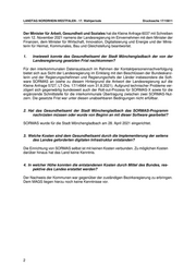 LANDTAG NORDRHEIN-WESTFALEN Drucksache 17/15612 17. Wahlperiode 15.11.2021 Antwort der Landesregierung auf die Kleine Anfrage 6037 vom 14. Oktober 2021 der Abgeordneten Dr. Martin Vincentz und Herbert Strotebeck AfD Drucksache 17/15369 Stadt Mönchengladbach – Land macht Druck auf die Gesundheitsämter und setzt Frist für Vernetzung der Ämter Vorbemerkung der Kleinen Anfrage Wegen einer möglichen vierten Corona-Welle im Herbst dieses Jahres macht das nordrhein- westfälische Ministerium für Arbeit, Gesundheit und Soziales Druck auf die kommunalen Ge- sundheitsämter, den elektronischen Datenaustausch zwischen den 53 Ämtern NRWs bis spä- testens zum 30. September 2021 flächendeckend sicherzustellen. Favorisiert wird hier seitens des Landes das Software Programm „SORMAS“, respektive ein Programm, das behelfsweise über eine Schnittstelle zum Programm SORMAS X verfügt. Diese Schnittstelle soll verpflichtend implementiert werden. Auf Grund mangelnder Vorgaben und fehlender Unterstützung seitens des Landes haben ei- nige Gesundheitsämter jedoch bereits eigene Programme zum Datenaustausch eingeführt und in Betrieb genommen; von diesen wird die Vorgabe des Landes zumindest kritisch gese- hen. Insbesondere gilt das im Hinblick auf die zu erwartenden Kosten für die ohnehin in der Pan- demie stark beanspruchten Ämter, welche kaum über Kapazitäten für eine solche Umstellung verfügen. Darüber hinaus nutzen viele Kommunen bereits erprobte digitale Systeme, die Kon- taktverfolgungen auch bei höheren Inzidenzen sicherstellen. Aus einer Antwort der Landesregierung auf die kleine Anfrage 5669 geht hervor, dass aus der Anbindung von SORMAS an die örtlichen IT-Systeme weitere Kosten für die Kommunen ent- stehen. Weiterhin heißt es, diese Kosten könnten grundsätzlich über die zur Verfügung ge- stellten Bundesmittel „zur technischen Modernisierung der Gesundheitsämter und zum An- schluss dieser an das elektronische Melde- und Informationssystem nach § 14 des Infektions- schutzgesetzes“ finanziert werden. Wie stellt sich die Situation im Gesundheitsamt der Stadt 1 Mönchengladbach dar? 1 Antwort des Landesregierung; Drucksache 17/14442 Datum des Originals: 12.11.2021/Ausgegeben: 19.11.2021