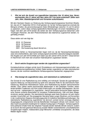 LANDTAG NORDRHEIN-WESTFALEN - 17. Wahlperiode Drucksache 17/16868 sowie zu thematischen Hintergründen. Darüber hinaus bietet die Landeszentrale hierzu ver- schiedene Publikationen an, die über die Internetseite der Landeszentrale erhältlich sind. 5. Wieso wird der Linksextremismus mit dem auslandsbezogenen Extremismus in dem Bericht kombiniert? Der „Gemeinsame Evaluationsbericht gemäß § 33 Absatz 2 Gesetz über den Verfassungs- schutz in Nordrhein-Westfalen (VSG NRW) des Ministeriums des Innern des Landes Nord- rhein-Westfalen und des Kriminologischen Forschungsinstituts Niedersachsen e.V.“ (Vorlage 17/6239) erfüllt einen gesetzlichen Auftrag des Verfassungsschutzgesetzes Nordrhein-West- falen. Die Gliederung des Berichtes orientiert sich deshalb an der Organisationsstruktur der Verfassungsschutzbehörde. Innerhalb dieser werden die Phänomenbereiche Linksextremis- mus und auslandsbezogener Extremismus in einem Referat bearbeitet. Der Bericht differen- ziert jedoch klar zwischen den beiden Phänomenbereichen, dies wird z.B. auf Seite 64 des Berichts deutlich. 5