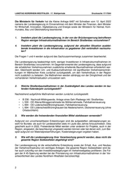 LANDTAG NORDRHEIN-WESTFALEN - 17. Wahlperiode Drucksache 17/17044 Die Ministerin für Verkehr hat die Kleine Anfrage 6487 mit Schreiben vom 12. April 2022 namens der Landesregierung im Einvernehmen mit dem Minister der Finanzen, dem Minister für Wirtschaft, Innovation, Digitalisierung und Energie sowie der Ministerin für Heimat, Kom- munales, Bau und Gleichstellung beantwortet. 1. Inwiefern plant die Landesregierung, in der von der Brückensperrung betroffenen Region weniger Infrastrukturmaßnahmen im Bereich Straßenbau vorzunehmen? 4. Inwiefern plant die Landesregierung, aufgrund der aktuellen Situation ausblei- bende Investitionen in die Infrastruktur zu gegebener Zeit verbindlich nachzuho- len? Die Fragen 1 und 4 werden aufgrund des Sachzusammenhangs zusammen beantwortet. Die Landesregierung beabsichtigt nicht, weniger Investitionen in Infrastrukturmaßnahmen im Bereich Straßenbau vorzunehmen. Im Gegenteil erwartet die Landesregierung, dass aufgrund der erheblichen Verkehrszunahmen zusätzliche erhaltende Baumaßnahmen erforderlich wer- den. Gleichwohl werden Um- und Ausbaumaßnahmen mit signifikanten Verkehrseinschrän- kungen im Märkischen Kreis zunächst zurückgestellt, um den Verkehrsfluss in der Region nicht zusätzlich zu belasten. Die Maßnahmen werden abhängig von der Dringlichkeit und der vorhandenen Verkehrssituation umzusetzen sein. 2. Welche Straßenbaumaßnahmen in der Zuständigkeit des Landes werden im lau- fenden Kalenderjahr zurückgestellt? Nachstehend aufgeführte Maßnahmen werden zunächst zurückgestellt: • B 236 - Nachrodt-Wiblingwerde, Anlage eines Geh-/Radwegs inkl. Straßenbau • L 530 - OD Altena/Altroggenrahmede bis Mühlenrahmede, Fahrbahnerneuerung • L 694 - OD Lüdenscheid/Brüninghausen, Fahrbahnerneuerung • L 694 - OD Lüdenscheid/Brüninghausen bis Niederschemm, Deckenerneuerung (ohne Ortsdurchfahrt) 3. Wie werden die freiwerdenden finanziellen Mittel stattdessen verwendet? Aufgrund von unvorhersehbaren Entwicklungen sind die aufgestellten Jahresplanungen so- wohl für Bundes- als auch für Landesstraßen stets im Laufe des Jahres fortzuschreiben. Dies geschieht auch in 2022. Freiwerdende Mittel werden unter anderem für Projekte, auch in der Region, eingesetzt, die beschleunigt umgesetzt werden können oder bei denen sich, zum Bei- spiel aufgrund von Materialpreiserhöhungen, Kostensteigerungen ergeben haben. 5. Wie will die Landesregierung ihrer Verantwortung gerecht werden, dass nicht die gesamte Region Südwestfalen abgehängt wird? Der Landesregierung ist die wirtschaftliche Entwicklung sowie der Erhalt, Aus- und Neubau der Verkehrsinfrastruktur ein wichtiges Anliegen. Die gesamte Region Südwestfalen wird da- her auch zukünftig von den Investitionssteigerungen im Verkehrswegebau profitieren. Die Fol- gen der A 45-Sperrung werden bei der Priorisierung von Infrastrukturmaßnahmen in der Ver- antwortlichkeit des Landes Nordrhein-Westfalen berücksichtigt. 2