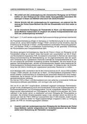 LANDTAG NORDRHEIN-WESTFALEN - 17. Wahlperiode Drucksache 17/16878 3. Wie erklärt sich die Landesregierung den dramatischen Rückgang von 62 Polizei- kräften vor dem Hintergrund der immer wieder herausgestellten besonderen Be- lastungen in Essen und Mülheim etwa durch die Clankriminalität? 4. Welche Schritte hält die Landesregierung für angemessen, um aufgrund der Be- lastung der Polizei Essen/Mülheim die Zahl der Einsatzkräfte nicht noch weiter zu senken? 5. Ist der dramatische Rückgang der Polizeikräfte im Wach- und Wechseldienst für Essen/Mülheim insbesondere im Vergleich mit anderen Kreispolizeibehörden aus Sicht der Landesregierung vertretbar? Die Fragen 1, 3, 4 und 5 werden aufgrund des Sachzusammenhangs gemeinsam beantwortet. Die Presseberichterstattung erfolgte im Nachgang zur Veröffentlichung der für den Innenaus- schuss am 22. Januar 2022 erstellten Vorlage 17/6351 und beruht auf der Annahme, dass die Entwicklung der Anzahl der im Wach- und Wechseldienst verwendeten Polizeivollzugbeamtin- nen- und beamten (PVB) in unmittelbarem Zusammenhang mit der generellen Entwicklung der Personalstärke einer Kreispolizeibehörde steht. Die daraus gezogene Schlussfolgerung, dass bei der Polizei in Essen ein Rückgang von 62 Polizeikräften erfolgt ist, ist falsch. Diese Zahl bezieht sich ausschließlich auf die im Wach- und Wechseldienst eingesetzten PVB. Grundsätzlich entscheidet im Rahmen der dezentralen Ressourcenverantwortung die Behördenleitung vor Ort eigenverantwortlich über die spezifi- sche Verwendung des zugewiesenen Personals innerhalb der Kreispolizeibehörde bzw. über Art und Umfang der personellen Ausstattung einzelner Dienststellen. Sie wird hierbei die ge- gebenen Rahmenbedingungen, aktuelle sicherheitsrelevante Aspekte sowie bestehende be- hördenstrategische Schwerpunktsetzungen berücksichtigen. Ihr obliegt es also, die Entschei- dung über die örtliche Verteilung der zugewiesenen personellen Ressourcen zu treffen. Auch deswegen steht, wie bereits in der für den Innenausschuss am 22. Januar 2022 erstellten Vorlage 17/6351 erläutert, die Anzahl der im Wach- und Wechseldienst eingesetzten PVB in keinem direkten Zusammenhang zur Entwicklung der personellen Ressourcen einer Kreispo- lizeibehörde. Sie ist vielmehr von den örtlichen Anforderungen und den innerbehördlichen Or- ganisationsstrukturen abhängig. Die Zahl der PVB im Wach- und Wechseldienst kann also selbst bei unveränderter Größe des Gesamtpersonalkörpers gleichbleiben, sich verringern oder auch erhöhen. Den von ihr im Jahr 2017 vorgefundenen, landesweit insgesamt schwierigen Rahmenbedin- gungen ist die Landesregierung durch eine konsequente Erhöhung der Einstellungszahlen für Komissaranwärterinnen und Kommissaranwärter und der fortgesetzten Möglichkeit zur Ver- längerung der Lebensarbeitszeit von PVB begegnet. Nur dadurch ist es gelungen, den Perso- nalkörper in den letzten Jahren zu stabilisieren und einen Rückgang der Personalstärke zu vermeiden. Die erhöhten Einstellungszahlen lassen in den nächsten Jahren bis 2024 ein An- wachsen der Zahl der PVB in NRW auf voraussichtlich über 41.000 erwarten. Zudem wurden jährlich 500 zusätzliche Stellen für Regierungsbeschäftigte (insgesamt 2.500) zur Verfügung gestellt, die PVB von Verwaltungsaufgaben entlasten. 2. Inwiefern sieht die Landesregierung einen Rückgang bei der Belastung der Polizei Essen/Mülheim, welcher entsprechend der Verteilmechanismen bei den Polizei- stellen einer Reduzierung der Planstellen vorausgeht? 2