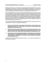 LANDTAG NORDRHEIN-WESTFALEN - 17. Wahlperiode Drucksache 17/15763 Bedarfsgemeinschaften und sozialversicherungspflichtig Beschäftigten determiniert. Das zeigt insbesondere der Vergleich der einzelnen Gemeindefinanzierungsgesetze, in welchem die Gewichtungsfaktoren konstant geblieben sind, die Gewichtung der verschiedenen Nebenan- sätze zum Hauptansatz sich jedoch verändert hat (zum Beispiel GFG 2019 – 2021). Die Ansatzbildung erfolgt zum Zweck der fiktiven Bedarfsermittlung bei allen und somit auch bei den Gemeinden, die wegen Bedarf deckender oder sogar überschießender Steuerkraft keine Schlüsselzuweisungen erhalten (Abundanz). Berechnet man die Gewichtung der Ne- benansätze zum Hauptansatz ohne die abundanten Kommunen, welche sich insbesondere jedes Jahr verändern, ergeben sich auch andere Relationen zwischen Haupt- und Nebenan- sätzen. Aus den entsprechend den Fragestellungen im Folgenden aufgeführten Relationen der Bedarfsansätze kann somit kein sachgerechter Schluss auf die jeweilige Verteilung der Schlüsselzuweisungen gezogen werden. Vor dem Hintergrund dieser Darlegung erfolgt die Beantwortung der Fragen gemeinsam und ausschließlich an Hand einer tabellarischen Darstellung. 1. Wie groß sind landesweit die prozentualen Gewichtungen der Komponenten des Gesamtansatzes (§ 8 Abs. 2 GFG NRW) in den Jahren von 2009 bis 2022? (bitte tabellarische Ausweisung je Jahr) 2. Wie groß sind in den kreisfreien Städten des Landes Nordrhein-Westfalen die pro- zentualen Gewichtungen der Komponenten des Gesamtansatzes (§ 8 Abs. 2 GFG NRW) in den Jahren von 2009 bis 2022? (bitte tabellarische Ausweisung je Jahr) 3. Wie groß sind in den kreisangehörigen Städten und Gemeinden des Landes Nord- rhein-Westfalen die prozentualen Gewichtungen der Komponenten des Gesamt- ansatzes (§ 8 Abs. 2 GFG NRW) in den Jahren von 2009 bis 2022? (bitte tabellari- sche Ausweisung je Jahr) Aufgrund des Sachzusammenhangs werden die Fragen 1 bis 3 zusammen beantwortet. Auf die Anlage wird verwiesen. 2