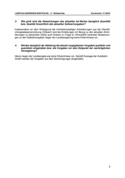 LANDTAG NORDRHEIN-WESTFALEN - 17. Wahlperiode Drucksache 17/16879 3. Wie groß sind die Abweichungen des aktuellen Ist-Wertes bezüglich Quantität bzw. Qualität hinsichtlich den aktuellen Sollwertvorgaben? Insbesondere vor dem Hintergrund der immissionsseitigen Anforderungen aus der Oberflä- chengewässerverordnung (OGewV) sind die Einleitungen mit Bezug zu den aktuellen Anfor- derungen zu überprüfen (siehe auch Antwort zu Frage 2). Hinsichtlich konkreter Abweichun- gen zu den Sollwertvorgaben liegen der Landesregierung keine Erkenntnisse vor. 4. Werden bezüglich der Ableitung die aktuell vorgegebenen Vorgaben qualitativ und quantitativ eingehalten bzw. die Vorgaben vor dem Zeitpunkt der nachträglichen Versiegelung? Hierzu liegen der Landesregierung keine Erkenntnisse vor. Gemäß Aussage der Autobahn GmbH werden die Vorgaben aus den Genehmigungen eingehalten. 3