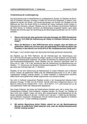 LANDTAG NORDRHEIN-WESTFALEN - 17. Wahlperiode Drucksache 17/16195 Vorbemerkung der Landesregierung Der Sachverhalt wurde im Wesentlichen im Landtagsbericht „Einsatz von Ölpellets als Brenn- stoff im Kraftwerk Scholven“ [Vorlage 17/1649] vom 04.02.2019 dargestellt. In diesem Land- tagsbericht werden die Rechts- und Genehmigungslage zum Einsatz von Ölpellets aus der Raffinerie der Ruhr Oel GmbH (ROG) im Kraftwerk der Uniper Kraftwerke GmbH (Uniper) in Gelsenkirchen-Scholven erläutert. Ölpellets aus der dem Kraftwerk benachbarten Raffinerie der ROG können im Kraftwerk Scholven als Nebenprodukt eingesetzt werden, wenn diese Ölpellets die Anforderungen der Genehmigung der Bezirksregierung Münster vom 20.12.2016 einhalten. 1. Warum wird trotz der oben genannten Interview-Aussagen der NRW-Umweltminis- terin am 12.01.2020 die Verbrennung der Pellets im Kraftwerk Scholven nicht ge- stoppt? 3. Wenn die Ministerin in dem WDR-Interview davon ausgeht, dass die Pellets ein gefährlicher Abfall sind, wie kann dann die gegenteilige Einschätzung (Status des Produkts) in dem Bericht vom 04.02.2019 an den Umweltausschuss richtig sein? Die Fragen 1 und 3 werden wegen des Sachzusammenhangs gemeinsam beantwortet. Die Ölpellets aus der ROG Raffinerie, die die Anforderungen der Genehmigung vom 20.12.2016 der Bezirksregierung Münster erfüllen, werden im Uniper Kraftwerk nicht als Abfall, sondern als Nebenprodukt eingesetzt. Sie erfüllen die Definition für Nebenprodukte im Sinne des Kreislaufwirtschaftsgesetzes. Diese Ölpellets sind ein „ähnlicher brennbarer Stoff“ im Sinne von § 1 Abs. 1 Nr. 2 der Verordnung über die Verbrennung und Mitverbrennung von Abfällen – 17. Verordnung zum Bundes-Immissionsschutzgesetz (17. BImSchV) und unterlie- gen daher den Anforderungen der 17. BImSchV. Ölpellets, für die eine Verbrennung als Nebenprodukt im Uniper Kraftwerk nicht in Betracht kommt, müssen als gefährlicher Abfall unter der Abfallschlüsselnummer 07 01 08* in dafür zugelassenen Anlagen entsorgt werden. Im Uniper Kraftwerk in Gelsenkirchen–Scholven selbst dürfen keine gefährlichen Abfälle angenommen und verbrannt werden. Die nicht im Kraftwerk eingesetzten Ölpellets wurden in der Vergangenheit teilweise falsch deklariert (Vorlage 17/1284 vom 29.10.2018). Gemäß Urteil des Landgerichts Bochum (LG Bochum, Urteil vom 02. Oktober 2018 – 2 KLs – 35 Js 232/14 - 1/17-, juris) wurden sie u.a. als nicht gefährlicher Abfall oder Nebenprodukt abgesteuert. Das Uniper Kraftwerk, das bisher als Kohlekraftwerk betrieben wird, soll zu einem Gas- und Dampfturbinen-Kraftwerk (GuD-Kraftwerk) umgebaut werden. Ein Einsatz von Ölpellets ist dann nicht mehr möglich. Uniper hat hierzu eine entsprechende Verzichtserklärung für die beiden betroffenen Blöcke B (ab dem 1.4.2022) und C (ab dem 1.1.2022) bei der Bezirksre- gierung Münster eingereicht. Infolgedessen wird die Verbrennung der Ölpellets im Kraftwerk der Uniper bis zum 1.4.2022 vollständig eingestellt. 2. Mit welcher Begründung dürfen Pellets, obwohl sie von der Bezirksregierung Münster als gefährlicher Abfall deklariert sind, unter der Abfallschlüsselnummer 070108* entsorgt werden? 2