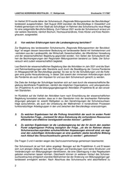 LANDTAG NORDRHEIN-WESTFALEN - 17. Wahlperiode Drucksache 17/17087 Im Herbst 2019 wurde daher der Schulversuch „Regionale Bildungszentren der Berufskollegs“ landesweit ausgeschrieben. Seit August 2020 erproben die Berufskollegs in Düsseldorf und Krefeld gemeinsam mit ihrer Stadt als Schulträger im Rahmen des Schulversuchs neue Wege für eine zeitgemäße Berufliche Bildung. Zum Februar 2021 wurde der Schulversuch erneut um vier weitere Standorte, nämlich Bochum, Hochsauerlandkreis, Kreis Höxter und Kreis Recklin- ghausen, ausgeweitet. 2. Von welchen Erfahrungen kann die Landesregierung berichten? Zur Begleitung des landesweiten Schulversuchs „Regionale Bildungszentren der Berufskol- legs“ ist wegen dessen besonderer Bedeutung ein landesweiter Beirat mit Vertreterinnen und -vertretern aus der Landespolitik, der Wirtschaft, Gewerkschaften, der öffentlichen Verwaltung und der wissenschaftlichen Begleitung gegründet worden. Von Seiten der Schulaufsicht ste- hen die Bezirksregierungen den Regionalen Bildungszentren beratend zur Seite. Der Schul- versuch wird zudem wissenschaftlich begleitet. Laut Bericht der wissenschaftlichen Begleitung über die Aktivitäten im Jahr 2021 sind die Start- und Rahmenbedingungen aller Standorte auch durch die Bewältigung der Corona-Pandemie im Alltagsgeschäft der Berufskollegs geprägt. So war es für die Schulleitungen und die Kolle- gien eine große Herausforderung, in dieser Zeit sowohl den immensen Anforderungen durch die Pandemie als auch den Impulsen für und aus dem Schulversuch gerecht zu werden. Die Ziele der Anträge der Schulträger beziehen sich auf zwei durch die wissenschaftliche Be- gleitung identifizierte Projektlinien, nämlich die möglichen Organisations- und Leitungsstruktu- ren (Projektlinie A) und die bildungsgangbezogenen Aktivitäten (Projektlinie B) an den einzel- nen Standorten. Im Rückblick auf die Vielfalt der Aktivitäten kann nach Einschätzung der wissenschaftlichen Begleitung konstatiert werden, dass es in den Standorten trotz der erschwerten Rahmenbe- dingungen gelungen ist, sowohl Maßgaben zu den Genehmigungen der Schulversuchsan- träge aufzunehmen, als auch die Umsetzung der Maßnahmen in konstruktiven Prozessen funktionstüchtiger Arbeitsgruppen in den und zwischen den Berufskollegs voranzubringen. 3. Zu welchen Ergebnissen hat die Prüfung hinsichtlich der auch im ersten Punkt formulierten Frage, „inwieweit für diese Zielsetzung die vorhandenen Ressourcen effizienter und effektiver bereitgestellt werden können“, geführt? 4. Zu welchen Ergebnissen ist die Landesregierung bei der ihr durch den zweiten Punkt aufgetragenen Prüfung bezüglich der Frage, „ob die im Rahmen dieses Schulversuches erprobten schulrechtlichen Anpassungen sinnvoll sind, um regi- onal den zukünftigen Anforderungen an eine qualitativ starke berufliche Bildung nach Ablauf des Versuchszeitraums gerecht zu werden“, gekommen? Die Fragen 3 und 4 werden wegen des Sachzusammenhangs gemeinsam beantwortet. Der Schulversuch ist auf fünf Jahre angelegt. Bezogen auf die Projektlinien A und B lassen sich zum jetzigen Zeitpunkt aus den Planungen und Erprobungen noch keine Strukturen und Veränderungen von Bildungsgängen identifizieren, die eine Übertragung in das Regelsystem geboten erscheinen lassen könnten. Gleichwohl können im weiteren Verlauf des Schulver- suchszeitraumes erfolgreich erprobte Maßnahmen bei der Änderung von Bildungsgängen ggf. landesweit ermöglicht werden. Nach Abschluss des Schulversuchs wird abschließend zu 2