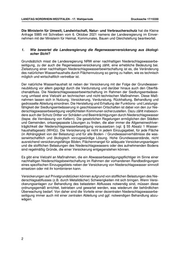 LANDTAG NORDRHEIN-WESTFALEN Drucksache 17/15330 17. Wahlperiode 07.10.2021 Antwort der Landesregierung auf die Kleine Anfrage 5985 vom 20. September 2021 des Abgeordneten Norwich Rüße BÜNDNIS 90/DIE GRÜNEN Drucksache 17/15206 Wie fördert die Landesregierung die ökologisch sinnvolle Regenwasserversickerung in NRW? Vorbemerkung der Kleinen Anfrage Nach dem Wasserhaushaltsgesetz (WHG), auf das auch das nordrhein-westfälische Lan- deswassergesetz (LWG NRW) verweist, soll Niederschlagswasser ortsnah versickert, verrie- selt oder direkt oder über die Kanalisation ohne Vermischung mit Schmutzwasser in ein Ge- wässer eingeleitet werden, soweit dem weder wasserrechtliche noch sonstige öffentlich-recht- liche Vorschriften noch wasserwirtschaftliche Belange entgegenstehen (vgl. § 55 Absatz 2 WHG). Eine Gemeinde kann durch Satzung festsetzen, ob und wie Niederschlagswasser zu versickern, zu verrieseln oder in ein Gewässer einzuleiten ist (vgl. § 44 Absatz 2 Satz 1 LWG NRW). Gemeinden sind verpflichtet, die Herstellung und Erhaltung der Funktions- und Leistungsfä- higkeit der Siedlungsentwässerung in geschlossenen Ortschaften sicherzustellen. Die dazu getätigten Investitionen müssen gegenfinanziert werden, was auch durch die Gebühren der Grundstückeigentümerinnen und Grundstückseigentümer für die Nutzung des Kanalnetzes geschieht. Der kommunalen Abwasserbeseitigungspflicht steht die Verpflichtung der Grund- stückeigentümerinnen und Grundstückseigentümer gegenüber, der Gemeinde ihr Schmutz- und Niederschlagswasser zur Verfügung zu stellen. Grundsätzlich besteht zwar die Möglich- keit der Freistellung von dieser Pflicht (vgl. § 49 Absatz 4 Satz 1 LWG NRW), doch kommt den Kommunen hier ein weiter Ermessensspielraum zu. Manchmal gewähren Kommunen mit Ver- weis auf eine entsprechende Abwassersatzung die Freistellung nur, wenn der Anschluss an das städtische Kanalisationsnetz mit unverhältnismäßigen Kosten verbunden ist. Aus ökologi- scher Sicht ist die im Ergebnis zugunsten der Einleitung in die Kanalisation ausbleibende Re- genwasserversickerung unzufriedenstellend. Für eine zunehmende Zahl von Bürgerinnen und Bürgern ist es vor dem Hintergrund der Kli- makrise nicht nachvollziehbar, dass ihrem Wunsch nach Regenwasserversickerung auf ihrem Grundstück nicht entsprochen wird, d.h. Freistellungen nicht erteilt oder vormals bestehende Genehmigungen nach Fristablauf nicht verlängert werden. Datum des Originals: 06.10.2021/Ausgegeben: 13.10.2021