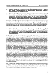 LANDTAG NORDRHEIN-WESTFALEN - 17. Wahlperiode Drucksache 17/15330 2. Wie viele Anträge auf Freistellung von der Überlassungspflicht nach § 48 LWG NRW wurden in den vergangenen fünf Jahren gestellt? (Antwort bitte aufschlüs- seln nach Jahren und nach Kommunen) 3. Wie viele der in Frage 1 genannten Anträge wurden nicht positiv beschieden? (Antwort bitte aufschlüsseln nach Jahren und nach Kommunen und unter Angabe des Grundes für die Ablehnung, z.B. Verweis auf den in einer Satzung festge- schriebenen Anschluss- und Benutzungszwang, Unmöglichkeit einer Versicke- rung wegen zur Regenwasserversickerung ungeeigneter Bodenbeschaffenheit) Die mit den beiden Frage 2 und 3 erbetenen Informationen liegen der Landesregierung nicht zentral vor. Binnen der zur Beantwortung einer Kleinen Anfrage zur Verfügung stehenden Zeit konnten die Zahlen bei den 396 Kommunen nicht erhoben werden. Die Auswertung entspre- chender Daten kann von den Kommunen innerhalb der zur Beantwortung Verfügung stehen- den Zeit unter Beachtung der zur Verfügung stehenden Ressourcen nicht erwartet werden. 4. Unter welchen Voraussetzungen ist eine Freistellung von der Überlassungspflicht nach § 48 LWG NRW in den nordrhein-westfälischen Gemeinden möglich? (Bitte aufgeschlüsselt nach Kommunen die zulässigen Gründe, z.B. unverhältnismäßi- ger Kostenaufwand für den Grundstückseigentümer bzw. die Grundstückseigen- tümerin, benennen) Die Freistellung von der Abwasserüberlassungspflicht für Niederschlagswasser richtet sich nach § 49 Absatz 4 Landeswassergesetz (LWG) NRW. Danach hat der Antragssteller zum einen gegenüber der Unteren Wasserbehörde nachzuweisen, dass das Niederschlagswasser gemeinwohlverträglich auf dem Grundstück versickert oder ortsnah in ein Gewässer eingelei- tet werden kann. Dieser Nachweis wird üblicherweise durch Vorlage eines hydrogeologischen Gutachtens, das die hinreichende Versickerungsfähigkeit der Böden bescheinigt, erbracht. Zum anderen bedarf es einer positiven Freistellungsentscheidung durch die abwasserbeseiti- gungspflichtige Kommune. Diese Entscheidung betrifft die Organisation der Abwasserbeseiti- gung, die als Aufgabe der kommunalen Selbstverwaltung im Planungsermessen der Kom- mune liegt. Das Oberverwaltungsgericht (OVG) NRW führt in den zahlreichen zu § 49 Absatz 4 LWG NRW ergangenen Entscheidungen in ständiger Rechtsprechung aus, dass der Kom- mune bei der Bestimmung der Art und Weise der Niederschlagswasserbeseitigung und der Planung und Bemessung der dazugehörigen Abwasseranlagen ein weitreichender Ermes- sensspielraum zukommt (vgl. OVG NRW, Beschlüsse vom 22.11.2018 - 15 A 2301/17 und vom 11.12.2017 – 15 A 1357/17 und Urteil vom 06.11.2018 - 15 A 907/17, jeweils mit weiteren Nachweisen). Bei dieser Entscheidung sind eine Vielzahl von Gegebenheiten wie Bodenver- hältnisse, Topographie, Straßen- und Leitungsverläufe, aber auch ein Geflecht teilweise wi- derstreitender öffentlicher und privater Interessen zu berücksichtigen (so die beispielhafte Auf- zählung in OVG NRW, Beschluss vom 23.08.2018 - 15 A 2063/17). Zu diesen Gegebenheiten gehören auch die Betriebsanforderungen der bestehenden Abwasseranlagen und der Aspekt der Gebührengerechtigkeit bei der Finanzierung der öffentlichen Abwasserbeseitigung. Es sind daher nicht nur Aspekte in den Blick zu nehmen, die die Entwässerung des einzelnen Grundstücks betreffen. Eine Aufstellung der erfragten zulässigen Gründe für eine positive Freistellungsentscheidung war folglich nicht möglich, da die Entscheidung immer das Ergebnis der Abwägung der vor Ort jeweils relevanten Aspekte ist und kein Katalog an Freistellungsgründen existiert. Diese kön- nen nur beispielhaft (s.o.), aber nicht abschließend benannt werden. 3