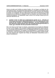 LANDTAG NORDRHEIN-WESTFALEN - 17. Wahlperiode Drucksache 17/16779 können und sollen auch Vorfälle aus anderen Quellen, z.B. von Zeugen, aus Medien etc. Be- rücksichtigung finden. Die bestehenden Beratungsstellen für Antidiskriminierungsarbeit hinge- gen haben die Aufgabe, Betroffene von Diskriminierung vertraulich, parteiisch und unabhängig zu beraten und zu begleiten. Bei ihrer fallbezogenen Arbeit steht die Unterstützung und das Empowerment der Menschen im Mittelpunkt. Auch hier bestehen somit keine Konflikte oder Kompetenzstreitigkeiten. Die Meldestellen stellen vielmehr eine wichtige Erweiterung der be- stehenden Maßnahmen dar. 5. Inwiefern wurde von Seiten der Landesregierung geprüft, ob es – alternativ zur Einrichtung eines weiteren Meldestellensystems und unter Beachtung des Para- grafen (§7) des Teilhabe- und Integrationsgesetzes – als unter Umständen günsti- gere Alternative möglich gewesen wäre, die vorhandene Beratungsinfrastruktur zu nutzen, ggf. verbunden mit einer personellen Aufstockung? Wie in der Antwort auf die Fragen 3-4 erläutert, unterscheidet sich die Aufgabe der Meldestel- len klar von den Aufgaben, die vorhandene Antidiskriminierungsstrukturen aktuell wahrneh- men. Sie erfordert wissenschaftliche und je nach Meldestelle besondere fachliche und phäno- menspezifische Kompetenzen. Um Aufgaben und Zuständigkeiten zu unterscheiden und nicht zu vermischen, wurde die Schaffung einer eigenen Struktur als sinnvollstes Vorgehen identifi- ziert. Dies entspricht dem Vorgehen beim Aufbau der Meldestellen Antisemitismus auch in anderen Bundesländern. 3