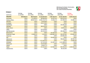 Anlage 2 Stichtag Stichtag Stichtag Stichtag Stichtag Stichtag Kommune 31.10.2021 30.11.2021 31.12.2021 31.01.2022 28.02.2022 18.03.2022 Gesamt 699.469,42 € 904.754,30 € 41.316.874,20 € 5.907.353,47 € 16.531.102,90 € 6.024.124,35 € Eschweiler 0,00 € 21.128,95 € 383.906,28 € 84.707,25 € 692.621,82 € 0,00 € Stolberg (Rhld.) 0,00 € 860.927,02 € 34.661.732,73 € 91.056,17 € 154.798,76 € 91.698,73 € Würselen 0,00 € 0,00 € 44.970,68 € 0,00 € 0,00 € 0,00 € Ennepetal 0,00 € 0,00 € 139.175,00 € 0,00 € 0,00 € 0,00 € Gevelsberg 0,00 € 0,00 € 0,00 € 0,00 € 132.264,18 € 0,00 € Hattingen 0,00 € 0,00 € 308.126,24 € 0,00 € 0,00 € 0,00 € Wetter (Ruhr) 0,00 € 0,00 € 0,00 € 0,00 € 18.870,33 € 225.970,82 € Witten 0,00 € 0,00 € 414.158,80 € 0,00 € 0,00 € 0,00 € Bad Münstereifel 0,00 € 0,00 € 463.194,20 € 0,00 € 196.182,87 € 2.494.073,89 € Blankenheim 0,00 € 0,00 € 0,00 € 131.536,16 € 0,00 € 0,00 € Euskirchen, Stadt 0,00 € 22.698,33 € 5.216,69 € 3.640.865,14 € 281.097,68 € 270.690,19 € Hellenthal 0,00 € 0,00 € 0,00 € 0,00 € 332.892,40 € 0,00 € Kall 0,00 € 0,00 € 0,00 € 732.816,50 € 0,00 € 0,00 € Mechernich 0,00 € 0,00 € 0,00 € 0,00 € 790.442,40 € 90.794,70 € Nettersheim 0,00 € 0,00 € 1.711.564,55 € 0,00 € 0,00 € 21.004,28 € Schleiden 0,00 € 0,00 € 227.153,18 € 131.407,11 € 1.311.589,62 € 0,00 € Weilerswist 0,00 € 0,00 € 136.536,88 € 0,00 € 5.233,42 € 0,00 € Zülpich 0,00 € 0,00 € 48.362,77 € 0,00 € 0,00 € 0,00 € Hagen 0,00 € 0,00 € 372.101,05 € 517.829,74 € 943.765,03 € 1.503.318,19 € Geilenkirchen 0,00 € 0,00 € 0,00 € 0,00 € 84.161,00 € 0,00 €