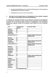 LANDTAG NORDRHEIN-WESTFALEN - 17. Wahlperiode Drucksache 17/16595 • Stundenweise Mobiltelefonie unter kontrollierten Bedingungen in hierfür geeigneten Anstaltsbereichen des offenen Vollzuges, • Videotelefonie als neue Form der Kommunikation. 2. Wie stellt sich der aktuelle Stand zur Videotelefonie in den einzelnen Anstalten dar? (bitte mit Anzahl Plätze nach Anstalt aufschlüsseln) In mittlerweile 29 Justizvollzugsanstalten des geschlossenen Vollzuges wird die Möglichkeit der Videotelefonie vorgehalten. Im offenen Vollzug wird die Videotelefonie mittels Mobiltelefon ermöglicht, da dort die stundenweise Nutzung von Mobiltelefonen unter kontrollierten Bedingungen zugelassen worden ist. Die erbetenen Daten ergeben sich aus der folgenden Tabelle: JVA Videotelefonie Anzahl der Plätze (ja/nein) Aachen ja 8 Attendorn ja 1 Bielefeld- ja 2 Brackwede Bielefeld-Senne ja (offener Vollzug: Nutzung der Mobiltelefonie) Bochum ja 3 SothA NRW ja 1 Bochum- ja (offener Vollzug: Nutzung der Langendreer Mobiltelefonie) Castrop-Rauxel ja (offener Vollzug: Nutzung der Mobiltelefonie) Detmold ja 2 Dortmund ja 2 Düsseldorf ja 3 Duisburg- ja 1 Hamborn Essen ja 1 Euskirchen ja (offener Vollzug: Nutzung der Mobiltelefonie) Geldern ja 4 Gelsenkirchen ja 4 Hagen ja 3 Hamm ja 2 Heinsberg ja 2 Herford ja 4 Hövelhof ja 3 (mit Pflegeabteilung) 2