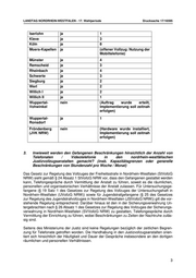 LANDTAG NORDRHEIN-WESTFALEN - 17. Wahlperiode Drucksache 17/16595 Iserlohn ja 1 Kleve ja 3 Köln ja 8 Moers-Kapellen ja (offener Vollzug: Nutzung der Mobiltelefonie) Münster ja 4 Remscheid ja 3 Rheinbach ja 4 Schwerte ja 3 Siegburg ja 2 Werl ja 2 Willich I ja 2 Willich II ja 1 Wuppertal- nein (Auftrag wurde erteilt, Vohwinkel Implementierung soll zeitnah erfolgen) Wuppertal- ja 1 Ronsdorf Fröndenberg nein (Hardware wurde installiert, (JVK NRW) Implementierung soll zeitnah erfolgen) 3. Inwieweit werden den Gefangenen Beschränkungen hinsichtlich der Anzahl von Telefonaten / Videotelefonie in den nordrhein-westfälischen Justizvollzugsanstalten gemacht? (insb. Kapazitätsgrenzen oder generelle Beschränkungen von Stundenzahl pro Woche / Monat) Das Gesetz zur Regelung des Vollzuges der Freiheitsstrafe in Nordrhein-Westfalen (StVollzG NRW) sieht gemäß § 24 Absatz 1 StVollzG NRW vor, dass den Gefangenen gestattet werden kann, Telefongespräche durch Vermittlung der Anstalt zu führen, soweit es die räumlichen, personellen und organisatorischen Verhältnisse der Anstalt zulassen. Für Untersuchungsge- fangene (§ 19 Satz 1 des Gesetzes zur Regelung des Vollzuges der Untersuchungshaft in Nordrhein-Westfalen (UVollzG NRW)) sowie für Jugendstrafgefangene (§ 25 des Gesetzes zur Regelung des Jugendstrafvollzuges in Nordrhein-Westfalen (JStVollzG NRW)) gilt die vor- stehende Regelung entsprechend. Darüber hinaus ist den in der Sicherungsverwahrung Un- tergebrachten nach § 26 Absatz 1 des Gesetzes zur Regelung des Vollzuges der Sicherungs- verwahrung in Nordrhein-Westfalen (SVVollzG NRW) zu gestatten, Telefongespräche durch Vermittlung der Einrichtung zu führen, wobei Beschränkungen zu Zeiten der Nachtruhe zuläs- sig sind. Seitens des Ministeriums der Justiz sind keine Regelungen bezüglich der zeitlichen Begren- zung für Telefonate getroffen worden. Die Handhabung in den Justizvollzugsanstalten orien- tiert sich hinsichtlich der Häufigkeit und Dauer der Gespräche insbesondere an den dortigen räumlichen und personellen Verhältnissen. 3