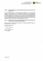 STAATSM lNlSTERlUM FÜR ENERGIE, KUMASCHUTZ, UMWELT UND LANDWIRTSCHAFT ~SACHSEN Frage 4: Mit welchen Kosten rechnet die Staatsregierung für die Verteilung von Wasserstoff? Für die industrielle Nutzung von Wasserstoff als Energieträger kann ein wirtschaftlicher Transport beziehungsweise eine wirtschaftliche Verteilung nur leitungsgebunden stattfinden. Hierzu können entweder nicht mehr genutzte Erdgasleitungen umgerüstet oder Wasserstoffleitungen neu gebaut werden. Der Neubau einer Wasserstofffernleitung (2,5 bis 3,36 Millionen Euro pro Kilometer) übersteigt die Kosten einer Ertüchtigung einer bestehenden Erdgasleitung (250 bis 640 Tausend Euro pro Kilometer) um das Fünf- bis Zehnfache (Quelle: Die Sächsische Wasserstoffstrategie, Seite 14 ). Frage 5: Mit welchen Kosten rechnet die Staatsregierung für die Umrüstung oder die Errichtung von Wasserstofftankstellen? Über die Kosten für Umrüstung oder Errichtung von Wasserstofftankstellen liegen der Staatsregierung keine Daten vor. n Grüßen w Seite 3 von 3