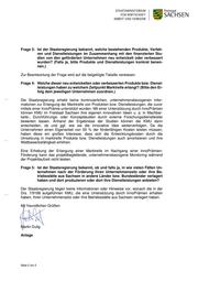 Frage 3: Ist der Staatsregierung bekannt, welche bestehenden Produkte, Verfah- ren und Dienstleistungen im Zusammenhang mit den finanzierten Stu- dien von den geförderten Unternehmen neu entwickelt oder verbessert wurden? (Falls ja, bitte Produkte und Dienstleistungen konkret benen- nen.) Zur Beantwortung der Frage wird auf die beigefügte Tabelle verwiesen. Frage 4: Welche dieser neu entwickelten oder verbesserten Produkte bzw. Dienst- leistungen haben zu welchem Zeitpunkt Marktreife erlangt? (Bitte den Er- folg dem jeweiligen Unternehmen zuordnen.) Die Staatsregierung erhebt keine kontinuierlichen, unternehmensbezogenen Infor- mationen zur Erlangung der Marktreife von Produkten bzw. Dienstleistungen, die zuvor mittels einer InnoPrämie unterstützt wurden. Mit einer Unterstützung durch InnoPrämien können KMU im Freistaat Sachsen ihre eigenen innovativen Ideen u. a. in Machbar- keits-, Durchführungs- oder Konzeptstudien durch externe Forschungsdienstleister bewerten lassen. Anhand der Ergebnisse der Studien können die KMU dann entscheiden, ob und ggf. wie sie die innovative Idee weiterverfolgen. Da die Unternehmen einen Eigenanteil von 50 % der förderfähigen Kosten leisten müssen, haben diese ein großes Interesse, dass sich die Entwicklungskosten durch die Umsetzung in marktreife Produkte bzw. Dienstleistungen auch amortisieren und ihre Wettbewerbsfähigkeit erhöhen. Eine Erhebung der Erlangung einer Marktreife im Nachgang einer InnoPrämien- Förderung kann das projektbegleitende, unternehmensbezogene Monitoring während der Projektlaufzeit nicht leisten. Frage 5: Ist der Staatsregierung bekannt, ob und falls ja, in wie vielen Fällen Un- ternehmen nach der Förderung ihren Unternehmenssitz oder ihre Be- triebsstätte aus Sachsen in andere Länder bzw. Bundesländer verlagert haben und dort produzieren oder dort ihre Dienstleistungen anbieten? Der Staatsregierung liegen keine Informationen oder Hinweise vor, wonach die in der Drs. 7/9188 aufgeführten KMU, die eine Unterstützung durch InnoPrämien erhalten haben, ihren Unternehmenssitz oder ihre Betriebsstätte aus Sachsen verlagert haben. Mit freundlichen Grüßen Martin Dulig Anlage Seite 2 von 2
