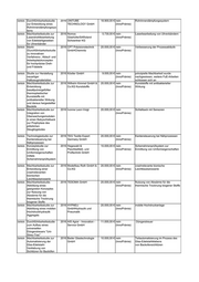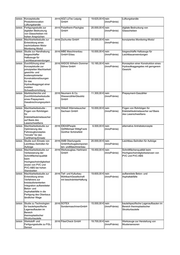 SMWA Studie zur Abschätzung 2017 L + S Präzisionsguß 12.000,00 € nein Technologie zur automatischen der Machbarkeit zur GmbH (InnoPrämie) Bearbeitung von Gussbauteilen automatischen Bearbeitung von Gussbauteilen SMWA Versuchsstrecke 2017 BPH Baustoff- 2.805,00 € nein Kaugummiasphalt Kaugummiasphalt/Langz Produktions- (InnoPrämie) eitstudie &Handelsgesellschaft mbH & Co. KG SMWA Studie zu textilen 2017 Flexitex GmbH 4.000,00 € nein textile Schutzeinhausungen mit Schutzeinhausungen mit (InnoPrämie) flexiblen und drehbaren Gelenken flexiblen und drehbaren Gelenken SMWA Machbarkeitsstudie zur 2017 Zschunke GmbH 20.000,00 € nein universeller Sensoradapter Entwicklung eines (InnoPrämie) universellen Sensoradapters SMWA Durchführung von 2017 Jürgen Schmiedgen 18.567,67 € nein Verbesserung des Bienenstockluft- Testreihen in Form einer (InnoPrämie) Therapiesystems klinischen Studie zum Nachweis der Wirksamkeit der Inhalation von Bienenstockluft über das Beecura Therapiesystem SMWA Durchführbarkeitsstudie 2017 InnoTec21 GmbH 9.790,00 € nein Technologie für berührungslose zur Nutzung von (InnoPrämie) Identifizierung von unterschiedlichen Fehlhaltungen/Krankheiten/Bewegung Technologien zur sanomalien im Bereich des Hufes berührungslosen beim Pferd Identifizierung von Fehlhaltungen/Krankheit en/Bewegungsanomalie n im Bereich des Hufes beim Pferd SMWA Initiale 2017 plasway-Technologies 11.815,00 € nein Dienstleistungen im Bereich der Machbarkeitsstudie zum GmbH (InnoPrämie) Mikroelektronik Projekt Quattro-1: Test der Materialien einer Ätzkammer auf Tauglichkeit für Plasma Enhanced Atomic Layer Deposition-PEALD und Plasma Enhanced Atomic Layer Etching-PE- ALE SMWA Durchführbarkeitsstudie 2017 Feinwerktechnik 20.000,00 € nein elektrische Antriebe zur Integration von GmbHGeising (InnoPrämie) elektrischen Antrieben in das Portfolio SMWA Machbarkeitsstudie 2017 Texlock GmbH 9.900,00 € nein Technologie zur Verbindung von Seil bezüglich der (InnoPrämie) und Ösen mit innenliegender Kette Verbindung von Seil und Ösen mit innenliegender Kette SMWA Durchführbarkeitsstudie 2017 Kallies Feinchemie AG 10.000,00 € nein Synthese von Nanosolen mit eng zur Synthese von (InnoPrämie) begrenztem Partikelgrößenbereich Nanosolen mit eng begrenztem Partikelgrößenbereich SMWA Studie zur Entwicklung 2017 TEG Textile Expert 20.000,00 € nein Beschichtungstechnologie für einer neuartigen Germany GmbH (InnoPrämie) Vliesstoffe Beschichtungstechnologi e für Vliesstoffe SMWA Studie zur Entwicklung 2017 Technitex-Sachsen 20.000,00 € nein neuartige Nähwirktechnologie einer neuartigen GmbH (InnoPrämie) Nähwirktechnologie