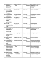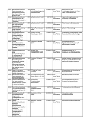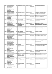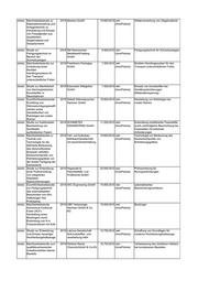 SMWA Machbarkeitsstudie zu 2018 Slickers GmbH 19.600,00 € nein Weiterverwertung von Ziegelmaterial Materialentwicklung und (InnoPrämie) Anlagentechnik zu Herstellung und Einsatz von Flüssigboden aus rezykliertem Ziegelmaterial und Geopolymeren SMWA Studie zur 2018 SM Sächsisches 9.900,00 € nein Fertigungstechnik für Schmelzanlagen Fertigungstechnik im MetallwerkFreiberg (InnoPrämie) Bereich der GmbH Schmelzanlagen SMWA Machbarkeitsstudie zur 2019 Polartherm-Flachglas 7.500,00 € nein flexiblen Handlingssystem für den Umsetzung eines GmbH (InnoPrämie) Transport unterschiedlicher Folien flexiblen Handlingssystems für den Transport unterschiedlicher Folien SMWA Studie zur Machbarkeit 2019 Eisenwerk Wittigsthal 7.500,00 € nein Einsatz von Kunststoffen bei von thermoplastischen GmbH (InnoPrämie) Sanitärsystemlösungen Kunststoffen in (Materialeinsparung). Messstationen SMWA Durchführbarkeitsstudie - 2019 WätaS Wärmetauscher 19.900,00 € nein Herstellung von Rohrbögen bei Ermittlung von Sachsen GmbH (InnoPrämie) ovalen Rohren Wärmedurchgangskoeffi zienten sowie Herstellbarkeit von Rohrbögen bei ovalen Rohren SMWA Studie zur funktionellen 2019 SCHMIETEX 11.200,00 € nein Entwicklung modifizierter Faserstoffe Beschichtung von ENGINEERING GmbH (InnoPrämie) durch nachträgliche Beschichtung bei hochfesten Faserseilen mit extremen synthetischen Fasern Anforderungen SMWA Machbarkeitsstudie zu 2019 Tief- und Kulturbau 19.600,00 € nein Technologie zur Beräumung des Technik und MühlbachGesellschaft (InnoPrämie) Deckschichtprofils von Technologie für die mit beschränkterHaftung Rohrleitungsgräben definierte Beräumung des abschnittsweise temporär verfüllten Deckschichtprofils von Rohrleitungsgräben vor der finalen Fertigung der Deckschicht SMWA Studie zur Entwicklung 2019 Hegewald & 20.000,00 € nein Prüfvorrichtung für einer Prüfvorrichtung PeschkeMeß- und (InnoPrämie) Rovingverbindungen von integrierten Prüftechnik GmbH Glasfaser- Spliceverbindungen SMWA Durchführbarkeitsstudie 2019 IWC Engineering GmbH 19.900,00 € nein automatisiertes zur Fertigungstechnik (InnoPrämie) Beschichtungsverfahren des automatisierten Beschichten von IHU- Halbzeugen fürs Prototyping SMWA Machbarkeitsstudie 2019 UBP Holzenergie 19.840,00 € nein Biodünger Ammonium-Carbonat- Sachsen GmbH & Co. (InnoPrämie) Faser (ACF) - KG Herstellung eines Biodüngers durch Einbindung von N in Faserstrukturen mit Kalk SMWA Studie zur Entwicklung 2019 Lakowa Gesellschaft 10.750,00 € nein Schaffung von Grundlagen für und Einsatz neuartiger fürKunststoffbe- und (InnoPrämie) moderne Hochleistungshalbzeuge Hochleistungshalbzeuge verarbeitung mbH SMWA Machbarkeitsstudie zum 2019 Härterei Reese 19.700,00 € nein Verbesserung des induktiven Härtens qualitätsverbesserten ChemnitzGmbH & Co.KG (InnoPrämie) bei komplexeren Bauteilen Induktionshärten kleiner Bauteile