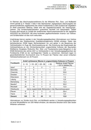 Freistaat SACHSEN STAATSMINISTERIUM FÜR ENERGIE, KLIMASCHUTZ, UMWELT UND LANDWIRTSCHAFT Die Leistung zur Erhebung der Schälschäden wurde im Jahr 2021 durch den Staatsbetrieb Sachsenforst (SBS) in 16 Losen öffentlich ausgeschrieben. Aufgrund der hohen Auslastung forstlicher Dienstleistungsunternehmen konnten jedoch nur sieben Lose vergeben werden, die im September/Oktober 2021 bearbeitet wurden. Die neun noch ausstehenden Lose wurden zwischenzeitlich durch den SBS erneut öffentlich ausgeschrieben. Die Zuschläge wurden im Februar des Jahres 2022 erteilt. Die Erhebung erfolgt in den Monaten April/Mai des Jahres 2022. Die Ergebnisse werden im Juni des Jahres 2022 erwartet. Der prozentuale Anteil von Bäumen mit frischer Schäle (Winter- und Sommerschäle jünger als ein Jahr) an der Gesamtstichprobe für diejenigen Forstbezirke (FoB), deren Verwaltungsjagdbezirke bei der Erhebung im Jahr 2021 vollständig bearbeitet wurden, lag in Leipzig bei 0,0 Prozent, in Neustadt bei 0,7 Prozent, in Plauen bei 3,3 Prozent und in Taura bei 0,4 Prozent. Für die Verwaltungsjagdbezirke des Biosphärenreservates Oberlausitzer Heide- und Teichlandschaft sowie im FoB Oberlausitz (außer an den im FoB Dresden angrenzenden Westbereich) erfolgt unter anderem aufgrund des dynamischen Geschehens der Afrikanischen Schweinepest keine Erfassung von Schälschäden über Werkverträge, sondern eine gutachterliche Einschätzung im Rahmen des Abschussplanverfahrens. Im Nationalpark Sächsische Schweiz und den Naturschutzgebieten Königsbrücker Heide/Gohrischheide, Elbniederterrasse Zeithain erfolgen aufgrund der dort deutlich vom übrigen Wirtschaftswald abweichenden, naturschutzfachlich geprägten Zielstellung keine systematische Erfassung des Wildeinflusses im Rahmen des Wildschadensmonitorings. Frage 4 Auf welcher Grundlage wurde die Abschussplanung in den Jagdbezirken ohne Verbiss- und Schälschadenserhebungen durchgeführt und wie wurde der Einfluss des Wildes auf die Vegetation bewertet? Grundlagen für die Aufstellung und Bestätigung beziehungsweise Festsetzung der Abschusspläne für einen Zeitraum von drei Jagdjahren sind das Bundesjagdgesetz (8 21) in Verbindung mit dem Sächsischen Jagdgesetz (8 21), der Sächsischen Jagdverordnung (8 2 Absatz 1 und 2) und den Vorgaben der Verwaltungsvorschrift (VwV) Schalenwild. Konkrete Erhebungen/Inventuren von Verbiss- und Schälschäden in den Jagdbezirken werden gesetzlich nicht gefordert. Der Prozess des Abschussplanverfahrens für die Abschussplanperiode der Jagdjahre 2022/2023 bis 2024/2025 findet gegenwärtig statt. Die Wildschadenssituation und die Ergebnisse der Forstlichen Gutachten bilden gemäß Ziffer II. der VwV Schalenwild nur einen Teil der Grundlagen für die Bewertung der zur Bestätigung beziehungsweise Festsetzung eingereichten Abschusspläne für Rot-, Dam- und Muffelwild durch die zuständigen Jagdbehörden. Die Analyse der Strecken- ergebnisse, der Mindestbestand zur Arterhaltung in der regionalen Population, die Lage der Wildeinstandsgebiete, die Wanderbewegungen des Wildes sind unter anderem weitere Grundlagen, die in die Bewertung der Abschlusspläne einzufließen haben. Seite 3 von 4