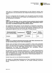 STAATSMINISTERIUM Freistaat DES INNERN SACHSEN recht nach § 113 Sachsische Gemeindeordnung nur dann Gebrauch machen, wenn Anhaltspunkte für eine bevorstehende oder erfolgte Rechtsverletzung im Einzelfall vor- liegen. Dies ist im vorliegenden Fall nicht gegeben, denn das begehrte pauschale Auskunfts- verlangen der Aufsichtsbehörde nach Einsätzen des Rettungsdienstes ist vom Institut der Rechtsaufsicht nicht gedeckt. Frage 2: Gegen wie viele Bewohner und aus welchem Grund wurde/wird aktuell ermittelt bzw. wurden im o0.g. Zeitraum Anzeigen erstattet? Bitte aufschlüsseln (Tatvor- wurf, Einzel- oder Wiederholungstat, Herkunftsland, Datum). Die aufgeführten Daten basieren auf einer Recherche im Polizeilichen Auskunftssys- tem Sachsen vom 18. März 2022. In dem benannten Zeitraum beging eine Person, die in der Aufnahmeeinrichtung als Bewohnerin oder Bewohner mit Wohnanschrift oder Meldeadresse registriert ist oder war, eine Straftat im Freistaat Sachsen: Staatsangehörigkeit ge Rum Gar Straftatbestand | Anzeigener- | Anzahl Wieder- der/s Tatverdächtigen holungstat stattung Georgien §setzbuch 243 Strafge- | 10.03.2022 4 | nein Frage 3: Fanden im o.g. Zeitraum Zimmerdurchsuchungen statt? Bitte aufschlüsseln (Da- tum der Durchsuchung, Grund, Funde, Konsequenzen). Werden durch die Polizei Durchsuchungen durchgeführt, müssen diese protokolliert werden. Die Nachweisführung, als auch Protokollierung, kann sowohl in elektronsicher Form im IVO bzw. auch mit vorgefertigten handschriftlichen Formularen erfolgen. Im letztgenannten Fall erfolgt nicht zwingenderweise eine nachträgliche Einarbei- tung/Erhebung im IVO als elektronischer Nachweis. Die Recherchen im IVO im benannten Zeitraum zum o. g. Objekt (Gebäude/Zimmer) ergaben keine registrierten Durchsuchungsmaßnahmen. Diese Erkenntnis basiert auf einer IVO-Recherche vom 18. März 2022, welche strafprozessuale (Strafprozessord- nung) und gefahrenabwehrrechtliche (Sächsisches Polizeivollzugsdienstgesetz) Vor- gänge und Maßnahmen beinhaltete. Darüber hinaus wird von einer Beantwortung abgesehen. Die weiteren zur vollständigen Beantwortung der Frage notwendigen Erkenntnisse lie- gen der Staatsregierung nicht unmittelbar vor. Sie müssten aufwendig recherchiert werden. Seite 2 von 4