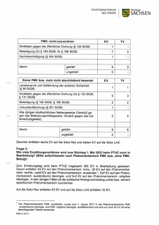 STAATSMINISTERIUM Freistaat DES INNERN SACHSEN PMK -nicht zuzuordnen- EV TV Straftaten gegen die öffentliche Ordnung (8 126 StGB) 1 - Beleidigung (2x $ 185 StGB, 5x $ 188 StGB) f 3 Sachbeschadigung (§ 304 StGB) 1 - davon geklart 4 3 ungeklart 5 - Keine PMK bzw. noch nicht abschließend bewertet EV TV Landesverrat und Gefährdung der äußeren Sicherheit 4 4 (8 99 StGB) Straftaten gegen die öffentliche Ordnung (4x 8 130 StGB, 5 3 § 131 StGB) Beleidigung (§ 185 StGB, § 188 StGB) 2 2 Urkundenfälschung ($ 281 StGB) 1 - Alle übrigen strafrechtlichen Nebengesetze (Verstoß ge- gen das Betäubungsmittelgesetz, Verstoß gegen das Da- 2 2 tenschutzgesetz) davon geklärt 9 8 ungeklärt 2 - Darunter entfallen sechs EV auf die Soko Rex und sieben EV auf die Soko LinX. Frage 3: Wie viele Ermittlungsverfahren sind zum Stichtag 1. Mai 2022 beim PTAZ noch in Bearbeitung? (Bitte aufschlüsseln nach Phänomenbereich PMK bzw. ohne PMK- Bezug!) Zum Erhebungstag sind beim PTAZ insgesamt 365 EV in Bearbeitung gewesen. Davon entfallen 53 EV auf den Phänomenbereich -links-, 36 EV auf den Phänomenbe- reich -rechts-, zwölf EV auf den Phänomenbereich -Ausländer-', fünf EV auf den Phäno- menbereich -ausländische Ideologie- und fünf EV auf den Phänomenbereich -religiöse Ideologie-. In den übrigen Fällen ist der politische Hintergrund bislang unklar bzw. keinem spezifischen Phänomenbereich zuordenbar. Auf die Soko Rex entfallen 53 EV und auf die Soko LinX entfallen 35 EV. ! Der Phänomenbereich PMK -Ausländer- wurde zum 1. Januar 2017 in die Phänomenbereiche PMK - ausländische Ideologie- und PMK -religiöse Ideologie- ausdifferenziert und wird nur noch für EV mit einer davorliegenden Tatzeit verwendet. Seite 4 von 5