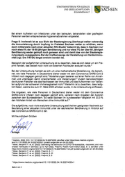 STAATSM1N1STER1UM FUR SOZ1ALES F.etaat UND GESELLSCHAFTUCHEN Ä l SE N ZUSAMMENHALT Bei einem Auftreten von Infektionen unter den betreuten, behandelten oder gepflegten Personen werden entsprechende Hygienemaßnahmen eingeleitet. Frage 5: Inwieweit ist es aus Sicht der Staatsregierung überhaupt weiter notwendig die Immunisierung durch lmpfung im Freistaat Sachsen welter zu erhöhen, wenn doch mittlerweile nach einer aktuellen RKI-Studiel bekannt ist, dass in Sachsen nur noch etwa 6% der 18-59 jährigen Bevölkerung und nur etwa 7% der über 60 Jährigen Bevölkerung weder geimpft noch genesen sind und damit das von der Staatsregie- rung eigens ausgegebene Ziel der lmpfkampange der Herstellung von Herdenimmu- nität (vgl. Drs 7/6724) längst erreicht worden ist. Bezüglich der aufgeführten Untersuchung ist zu beachten, dass es sich dabei um ein Pre- print handelt, das derzeit noch nicht von externen Fachleuten evaluiert wurde.2 Bei der Untersuchung handelt es sich um eine mathematische Modellierung, die berech- net, wie viele Personen in Deutschland bisher weder mit dem Coronavirus SARS-CoV-2 infiziert noch dagegen geimpft sind.3 Modellierungen basieren auf einer Reihe von Annah- men und unterliegen damit Unsicherheiten und Verzerrungen.4 Zudem berücksichtigten die Autoren Faktoren wie das Nachlassen der lmmunität und das Aufkommen von Varian- ten aufgrund der schweren Vorhersagbarkeit nicht.5Weiterhin ist zu beachten, dass ledig- lich Daten, welche bis zum 31. März 2022 erhoben wurde, in die Untersuchung einflossen. Die Angaben, wie viele Personen in Deutschland bisher weder mit dem Coronavirus SARS-CoV-2 infiziert noch dagegen geimpft sind, variieren nach Angaben der Autoren zwischen den Bundesländern. So weist Sachsen im bundesweiten Vergleich mit 20,3 % den höchsten Anteil von Menschen ohne lmmunität auf.5 Die aufgeführte, noch nicht evaluierte Untersuchung stellt keinen geeigneten Nachweis zur Beurteilung einer aktuellen lmmunität unter der sächsischen Bevölkerung in Hinblick auf das Coronavirus SARS-CoV-2 dar. Mit freundlichen Grüßen / Anlagö 2 medrxiv, 2022, DOI: 10.1101/2022.04,19.22274030; abrufbar unter https://www.medrxiv.org/con- tent/10.1101/2022.04.19.22274030v1 (zuletzt aufgerufen am 24.05.2022) 3 Maier, Benjamin F. et. al. (2022): Estimating the distribution of COVID-19-susceptible, -recovered, and -vac- cinated individuals in Germany up to April 2022, Preprint, Robert Koch-Institut 2022, S. 3, abrufbar unter https://www.medrxiv.org/content/10.1101/2022.04.19.22274030v1.full.pdf (zuletzt aufgerufen am 24.05.2022) 4 Maier, Benjamin F. et. al. (2022): Preprint, S. 11 5 Maier, Benjamin F. et. al. (2022): Preprint, S. 2f. 6 Maier, Benjamin F. et. al. (2022): Preprint, S. 9 1 https://www.medrxiv.org/content/10.1101/2022.04.19.22274030v1 Seite 4 von 4