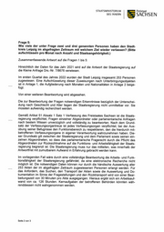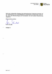 = SACHSEN STAATSMINISTERIUM Freistaat DES INNERN Nach einer umfassenden Abwägung des parlamentarischen Fragerechts einerseits und der Gewährleistung der Funktionsfähigkeit der Staatsregierung andererseits wurde da- her, auch unter Berücksichtigung der Zumutbarkeit, von einer weiteren Beantwortung abgesehen. Mit freundlichen Grüßen 8 oa Armin Schuster Anlagen: 2 Seite 3 von 3