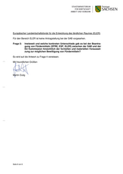 Europäischer Landwirtschaftsfonds für die Entwicklung des ländlichen Raumes (ELER) Für den Bereich ELER ist keine Antragstellung bei der SAB vorgesehen. Frage 5: Inwieweit und welche konkreten Unterschiede gab es bei der Beantra- gung von Fördermitteln (EFRE, ESF, ELER) zwischen der SAB und der EU Kommission hinsichtlich der formellen und materiellen Vorausset- zung zur möglichen Bewilligung von Fördermitteln? Es wird auf die Antwort zu Frage 4 verwiesen. Mit freundlichen Grüßen Martin Dulig Seite 6 von 6