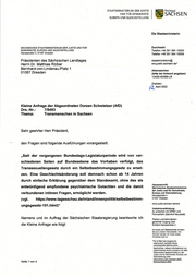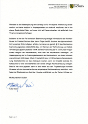 "o*'*'1,'i;'AlXTl#ä,iiili3 EUR0PA UND I GLEICHSTELLUNG I ffi W 3Xölisnrv Überdies ist die Staatsregierung dem Landtag nur für ihre eigene Amtsführung verant- wortlich und daher lediglich in Angelegenheiten zur Auskunft verpflichtet, die in ihre eigene Zuständigkeit fallen und muss nicht auf Fragen eingehen, die außerhalb ihres Verantwortungsbereichs liegen. Letzteres ist hier der Fall soweit die Beantwortung etwaige lnformationen der Kranken- häuser im Freistaat Sachsen bzw. deren Träger betriffi, da diese als eigenverantwort- lich handelnde Dritte Aufgaben erfüllen, bei denen sie gemäß $ 28 des Sächsischen Krankenhausgesetzes (SächsKHG) bzw. im Rahmen der Wahrnehmung von Selbst- verwaltungsaufgaben (letzteres betrifft allenfalls Krankenhäuser in kommunaler Träger- schaft) lediglich der Rechtsaufsicht, nicht aber der Fachaufsicht unterliegen. Die Staatsregierung darf im Zuständigkeitsbereich der Rechtsaufsicht von ihrem lnformati- onsrecht (nach $ 28 Absatz 3 Satz 1 SächsKHG bzw. S 113 Sächsische Gemeindeord- nung (SächsGemO)) nur dann Gebrauch machen, wenn im Einzelfall konkrete An- haltspunkte für eine bevorstehende oder bereits erfolgte Rechtsverletzung vorliegen. Dies ist hier nicht gegeben, denn es sind weder aus den Fragestellungen konkrete Hinweise auf eine bevorstehende oder eingetretene Rechtsverletzung ersichtlich, noch liegen der Staatsregierung derartige Hinweise unabhängig von der Kleinen Anfrage vor. Mit freundlichen Grüßen .( 4) Katja Seite 4 von 4