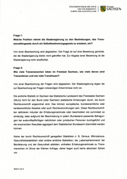 STAATSM IN ISTERIUM DER JUSTIZ UND FÜR DEMOKRATIE EUROPA UND GLEICHSTELLUNG lW3Äöiisrrv Frage 1: Wetche Position nimmt die Staatsregierung zu den Bestrebungen, das Trans- sexuellengesetz d urch ei n Selbstbestimmungsgesetz zu ersetzen, ein? Von einer Beantwortung wird abgesehen. Die Frage ist auf eine Bewertung gerichtet, die die Staatsregierung bisher nicht getroffen hat. Zur Abgabe einer Bewertung ist die Staatsreg ierung nicht verpflichtet Frage 2: Wie viele Transmenschen leben im Freistaät Sachsen, wie viele davon sind Transmänner und wie viele Transfrauen? Von einer Beantwortung der Fragen wird abgesehen. Der Staatsregierung liegen die zur Beantwortung der Fragen notwendigen Erkenntnisse nicht vor. Die amtliche Statistik (in Sachsen das Statistische Landesamt des Freistaates Sachsen (StLA)) führt für den Bund (oder Sachsen) statistische'Erhebungen durch, die durch Rechtsvorschrift angeordnet sind. Das können europäische, bundesrechtliche oder landesrechtliche Gesetze oder auch Rechtsverordnungen sein. Diese Rechtsvorschrif- ten definieren mitunter die Erhebungsmerkmale oder beschreiben sie zumindest so eindeutig, dass aufgrund der Beschreibung in jedem Bundesland passende Befragun- gen bei auskunftspflichtigen natürlichen oder juristischen Personen durchgeführt und die enrvünschten Resultate aggregiert dem Statistischen Bundesamt übermittelt werden können. Keine der durch Rechtsvorschrift geregelten Statistiken z. B. Zensus, Mikrozensus, Gesundheitsstatistiken oder andere amtliche Statistiken, die ,,Lebensphänomene" der Bevölkerung und der Gesundheit abbilden, enthalten Erhebungsmerkmale zu Trans- menschen im Sinne der Kleinen Anfrage; daher liegen auch keine absoluten Zahlen vor. Seite 2 von 4