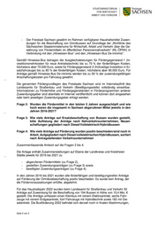 Der Staatsminister Sächsisches Staatsministerium für Wirtschaft, Arbeit und Verkehr Durchwahl Postfach 10 03 29 | 01073 Dresden Telefon: 0351 564-80001 Telefax: 0351 564-80080 Präsidenten des Sächsischen Landtages Aktenzeichen (bitte bei Antwort angeben) Herrn Dr. Matthias Rößler LS-1053/89/275-2022/29111 Bernhard-von-Lindenau-Platz 1 Dresden, 16. Juni 2022 01067 Dresden Kleine Anfrage des Abgeordneten Tobias Keller (AfD) Drs.-Nr.: 7/9893 Thema: Förderrichtlinie Nahverkehrsbusse, Ersatzbeschaffung Sehr geehrter Herr Präsident, den Fragen sind folgende Ausführungen vorangestellt: „Die Verkehrswende soll auch in Sachsen vor Allem im öffentlichen Nah- verkehr beschleunigt werden. Bei der Umstellung der Busflotten der Nahverkehrsunternehmen auf Elektromobilität stellen sich deshalb fol- gende Fragen:“ Namens und im Auftrag der Sächsischen Staatsregierung beantworte ich die Kleine Anfrage wie folgt: Frage 1: Welche Förderrichtlinie regelt die Ersatzbeschaffung von Die- sel- in Elektro- oder Hybridbusse und wie hoch ist die Förde- rung je Bus? Im Sinne der Fragestellung „regeln“ nicht die einschlägigen Förderrichtlinien Hausanschrift die „Ersatzbeschaffung von Diesel- in Elektro- oder Hybridbusse“. Vielmehr Sächsisches Staatsministerium ergeben sich die verbindlichen Vorgaben zur sukzessiven Flottenumstellung für Wirtschaft, Arbeit und Ver- kehr auf Fahrzeuge mit sauberen und emissionsfreien Antrieben im öffentlichen Wilhelm-Buck-Straße 2 Personennahverkehr aus dem Saubere-Fahrzeuge-Beschaffungs-Gesetz 01097 Dresden vom 9. Juni 2021 (BGBl. I S. 1691). Außenstelle Die Einhaltung der gesetzlichen Vorgaben zur Beschaffung bestimmter Stra- Ammonstraße 10 01069 Dresden ßenfahrzeuge obliegt den im Gesetz benannten öffentlichen Auftraggebern sowie den Sektorenauftraggebern, mithin den im öffentlichen Personennah- verkehr tätigen Verkehrsunternehmen. www.smwa.sachsen.de Den Verkehrsunternehmen steht es frei, für die Beschaffung von sauberen Verkehrsanbindung: und emissionsfreien Fahrzeugen Zuwendungen aus geeigneten Förderpro- Zu erreichen mit den Straßenbahnlinien grammen der Europäischen Union, der Bundesrepublik Deutschland, des 3, 7, 8, 9 - Haltestelle Carolaplatz Freistaats Sachsen und ggf. weiterer Zuwendungsgeber zu beantragen. * Information zum Zugang für ver- schlüsselte elektronische Dokumente unter www.smwa.sachsen.de/kon- takt.htm poststelle@smwa-sachsen. Seite 1 von 3 de-mail.de