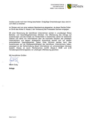 insofern wurde noch kein Antrag beschieden. Endgültige Entscheidungen dazu sind im Juni 2022 zu erwarten. Im Übrigen wird von einer weiteren Beantwortung abgesehen, da dieser Rechte Dritter im Sinne des Artikel 51 Absatz 2 der Verfassung des Freistaates Sachsen entgegen. Mit einer Benennung der betroffenen Unternehmen würden in unzulässiger Weise Betriebs- und Geschäftsgeheimnisse offenbart. Die Offenbarung des Antrags auf Zuwendungen und des Erhalts von Fördermitteln in bestimmten Jahren für bestimmte Zwecke und damit von Informationen über die finanzielle Situation des jeweiligen Unternehmens und dessen strategische Ausrichtung bezieht sich auf dessen wirtschaftlichen Geschäftsbetrieb. Haben Dritte Kenntnis darüber kann dies Auswirkungen auf die Wettbewerbsfähigkeit des betroffenen Unternehmens haben, weswegen an der Geheimhaltung dieser Informationen ein schutzwürdiges Interesse besteht. Dieses ist durch Rechtsnormen (§ 203 Absatz 2 StGB und § 30 Verwaltungsverfahrensgesetz) vor unbefugter Offenbarung geschützt. Mit freundlichen Grüßen Martin Dulig Anlage Seite 3 von 3