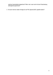 welches Haushaltstitel abgesichert? Wenn nein, wann wird mit einer Entscheidung dahingehend gerechnet? 3. Ab wann können wieder Anträge für die FRL Speicher/2021 gestellt werden? 2