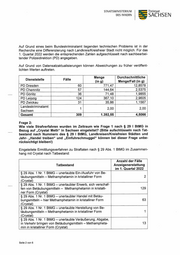 STAATSMINISTERIUM Freistaat DES INNERN SACHSEN Ordnungswidrigkeiten nach $ 24a Abs. 2 StVG (berauschende Mittel) und Straftaten nach 8 315c StGB (Gefährdung des Straßenverkehrs) und $ 316 StGB (Trunkenheit im Verkehr) mit erfasstem Tatmittel „Methamphetamin“ nach Tatbestand und betroffenen Landkreisen/Kreisfreien Städten: Anzahl der Fälle Landkreis/Kreisfreie Stadt Tatbestand Anzeigenerstattung + im 1. Quartal 2022 § 24a Abs. 2 StVG — —o/— Pp 4— Bautzen § 315c StGB § 316 StGB 8 24a Abs. 2 StVG Chemnitz, Stadt $ 315c StGB ı 8 316 StGB oats § 24a Abs. 2 StVG Dresden, Stadt § 315c StGB § 316 StGB § 24a Abs. 2 StVG Blip Görlitz § 315c StGB 1 § 316 StGB § 24a Abs. 2 StVG Leipzig, Stadt § 315c StGB § 316 StGB $ 24a Abs. 2 StVG Meißen $ 315c StGB 8 316 StGB 8 24a Abs. 2 StVG Mittelsachsen $ 315c StGB $ 316 StGB 8 24a Abs. 2 StVG Sächsische Schweiz-Osterzgebirge 8 315c StGB § 316 StGB § 24a Abs. 2 StVG Zwickau $ 315c StGB 8 316 StGB § 24a Abs. 2 StVG Gesamt $ 315c StGB $ 316 StGB Mit ffeundlichen-Grüßen 4 — ad fet Armin Schuster Seite 6 von 6