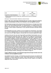 STAATSMlNlSTERlUM FÜR SOZlALES UND GESELLSCHAFTLlCl--lEN ZUSAMMENHALT ~SACHSEN 2021 Jahr 2020 Januar - Oktober1 Anzahl der an Krebs Gestorbenen 12.995 9.944 1 vorläufige Ergebnisse Januar bis Oktober 2021- basierend auf 96 Prozent der verarbeiteten Todesursachen Datenquelle: Todesursachenstatistik, Statistisches Landesamt Sachsen Frage 4: Wie viele notwendige Krebsbehandlungen konnten aufgrund der Überlas- tung der Krankenhäuser mit Sars-Cov2-Patienten, nicht durchgeführt werden? Der Staatsregierung liegen keine entsprechenden Erkenntnisse vor. Es liegen keine Daten dazu vor, wie viele Krebsbehandlungen von Krankenhäusern im Freistaat Sachsen aus- gesetzt oder verschoben wurden und ob betroffene Patientinnen und Patienten stattdes- sen ggf. in einem anderen Krankenhaus in oder außerhalb Sachsens behandelt werden konnten. Die Staatsregierung ist dem Landtag nur für ihre Amtsführung verantwortlich. Sie ist daher nur in solchen Angelegenheiten zur Auskunft verpflichtet, die in ihre Zuständigkeit fallen und muss nicht auf Fragen eingehen, die außerhalb ihres Verantwortungsbereichs liegen. Letzteres ist hier der Fall, denn die Frage betrifft ausschließlich Sachverhalte, die von ei- genverantwortlich handelnden Dritten, den Trägerinnen und Trägern der Plankrankenhäu- ser im Freistaat Sachsen, wahrgenommen werden. Die Frage betrifft - genauer gesagt - ausschließlich Aufgaben, bei denen die Krankenhäuser bzw. deren Trägerinnen und Trä- ger gemäß § 28 des Sächsischen Krankenhausgesetzes - SächsKHG bzw. im Rahmen der Wahrnehmung von Selbstverwaltungsaufgaben (Letzteres betrifft allenfalls Kranken- häuser in kommunaler Trägerschaft) ausschließlich der Rechtsaufsicht, nicht aber der Fachaufsicht unterliegen. Im Zuständigkeitsbereich der Rechtsaufsicht können die Staats- regierung bzw. die hierfür zuständigen Rechtsaufsichtsbehörden von Ihrem Informations- recht (nach§ 28 Absatz 3 Satz 1 SächsKHG bzw.§ 113 Sächsische Gemeindeordnung - SächsGemO) nur dann Gebrauch machen, wenn im Einzelfall konkrete Anhaltspunkte für eine bevorstehende oder bereits erfolgte Rechtsverletzung vorliegen. Dies ist in dem vor- liegenden Fall nicht gegeben, denn es sind weder aus der Fragestellung Hinweise auf eine bevorstehende oder eingetretene Rechtsverletzung erkennbar noch liegen der Staatsre- gierung derartige Hinweise unabhängig von der Kleinen Anfrage vor. Frage 5: Welche Vorsorge- und Früherkennungsuntersuchungen konnten durch die Pandemie nicht durchgeführt werden? Grundsätzlich konnten Vorsorge- und Früherkennungsuntersuchungen auch während der Pandemie in Anspruch genommen werden. Sofern diese aufgrund von Erkrankungen, Quarantäne etc. nicht in Anspruch genommen werden konnten, besteht in der Regel die Möglichkeit, diese nachzuholen. Seite 2 von 3
