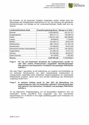 STAATSM INlSTERIUM FÜR ENERGIE, KLIMASCHUTZ, UMWELT UND l.ANDWlRTSCHAFT ~SACHSEN Die Kontrolle, ob die genannten Vorgaben eingehalten werden, erfolgt durch die Bediensteten des Staatsbetriebes Sachsenforst vor Ort. Die Verteilung der geförderten Schadholzmengen und Beträge auf die Landkreise/Kreisfreien Städte stellt sich wie folgt dar: 3 Landkreis/Kreisfreie Stadt Auszahlungsbetrag (Euro) Menge in m (fm) Bautzen 2.256.460,56 322.351,51 Erzqebirqskreis 905.777,11 129.396,73 Görlitz 1.403.911,59 200.558,80 Leipzig 49.938,63 7.134,09 Meißen 342.493,12 48.927,59 Mittelsachsen 990.179,33 141.454, 19 Nordsachsen 319.285,82 45.612,26 Sächsische Schweiz-Osterzqebirqe 1.038.357,79 148.336,83 Voqtlandkreis 514.584,70 73.512,10 Zwickau 337.842,89 48.263,27 Stadt Chemnitz 49.159,95 7.022,85 Summe 8.207 .991,49 1.172.570,21 Frage 2: Für wie viel Kubikmeter Schadholz der Laubbaumarten wurden im Jahr 2021 welche Fördersummen ausgezahlt? (Schadholzmengen bitte getrennt nach Baumarten, Forstbezirk und jeweiliges PKW-Revier auflisten.) Wie unter Frage 1 geschildert, ist die Aufbereitung von Laubholz nicht förderfähig, da von biotischen Schadursachen (vor allem rindenbrütende Insektenarten) an Laubbaumarten regelmäßig keine erheblichen Waldschutzgefahren für angrenzende Waldbestände ausgehen, denen durch eine schnelle Aufarbeitung des Schadholzes vorgebeugt werden kann. Frage 3: In welchem Umfang wurde im Jahr 2021 die Behandlung von eingeschlagenem Holz mit Insektiziden gefördert? (Schadholzmengen bitte getrennt nach Baumarten, Forstbezirk und jeweiliges PKW-Revier auflisten.) Für die Maßnahme „Polterbehandlung von mit Borkenkäfern befallenem Holz mit Insektiziden" wurden 225.298, 16 Euro ausgezahlt, was eine rechnerische 3 Gesamtmenge von 70.405,68 m (fm) ergibt (Zahlbetrag geteilt durch Fördersatz von 3 3,20 Euro/m (fm)). Seite 2 von 3