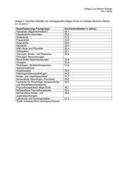Anlage 2 zur Kleinen Anfrage Drs. 7/9332 Anlage 2: Durchschnittsalter der vertragsärztlich tätigen Ärzte im Freistaat Sachsen (Stand: 01.10.2021) * Bedarfsplanungs-Fachgruppe Durchschnittsalter in Jahren Hausärzte (Allgemeinmedizin) 54,1 Hausärztliche Internisten 50,8 Kinderärzte 51,9 Frauenärzte 53,0 Augenärzte 50,6 Hautärzte 53,4 HNO-Ärzte und Phoniater 52,4 Orthopäden 52,1 Chirurgen, Kinder- und Plastische 54,6 Chirurgen; Neurochirurgen Mund-Kiefer-Gesichtschirurgen 54,9 Urologen 53,9 Radiologen, Strahlentherapeuten, 51,6 Nuklearmediziner Anästhesisten 55,8 Pathologen/Neuropathologen 54,8 Kinder- und Jugendpsychiater 51,7 Nervenärzte, Neurologen, Psychiater 53,0 Fachärzte für Physiologie, therapeutische 53,5 und Rehabilitationsmediziner Psychotherapeutisch tätige Ärzte 55,1 Nichtärztliche Psychotherapeuten 50,2 Nichtärztliche Kinder- und 48,6 Jugendpsychologen Laborärzte und Humangenetiker 51,2 * Quelle: Kassenärztliche Vereinigung Sachsen