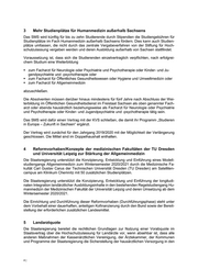 3 Mehr Studienplätze für Humanmedizin außerhalb Sachsens Das SMS wird künftig für bis zu zehn Studierende durch Stipendien die Studiengebühren für Studienplätze im Fach Humanmedizin außerhalb Sachsens fördern. Dies kann auch Studien plätze umfassen, die nicht durch das zentrale Vergabeverfahren von der Stiftung für Hoch schulzulassung vergeben werden und deren Ausbildung außerhalb von Sachsen stattfindet. Voraussetzung ist, dass sich die Studierenden einzelvertraglich verpflichten, nach erfolgrei chem Studium eine Weiterbildung ▪ zum Facharzt für Neurologie oder Psychiatrie und Psychotherapie oder Kinder- und Ju gendpsychiatrie und -psychotherapie oder ▪ zum Facharzt für Öffentliches Gesundheitswesen oder Hygiene und Umweltmedizin oder ▪ zum Facharzt für Allgemeinmedizin abzuschließen. Die Absolventen müssen darüber hinaus mindestens für fünf Jahre nach Abschluss der Wei terbildung im Öffentlichen Gesundheitsdienst im Freistaat Sachsen als oben genannter Fach arzt oder ebenda hausärztlich beziehungsweise als Facharzt für Neurologie oder Psychiatrie und Psychotherapie oder Kinder- und Jugendpsychiatrie und -psychotherapie tätig sein. Das SMS wird dafür einen Vertrag mit der KVS schließen, die damit ihr Programm „Studieren in Europa – Zukunft in Sachsen“ ergänzt. Der Vertrag wird zunächst für den Jahrgang 2019/2020 mit der Möglichkeit der Verlängerung geschlossen. Die Mittel sind im Doppelhaushalt enthalten. 4 Reformvorhaben/Konzepte der medizinischen Fakultäten der TU Dresden und Universität Leipzig zur Stärkung der Allgemeinmedizin Die Staatsregierung unterstützt die Konzipierung, Entwicklung und Einführung eines Modell studiengangs Allgemeinmedizin zum Wintersemester 2020/2021 durch die Medizinische Fa kultät Carl Gustav Carus der Technischen Universität Dresden (TU Dresden) am Satelliten campus am Klinikum Chemnitz mit 50 zusätzlichen Studienplätzen. Die Staatsregierung unterstützt die Konzipierung, Entwicklung und Einführung der longitudi nalen Integration landärztlicher Ausbildungsinhalte in den bestehenden Regelstudiengang Hu manmedizin der Medizinischen Fakultät der Universität Leipzig und deren Umsetzung ab dem Wintersemester 2020/2021. Die Einrichtung und Durchführung dieser Reformvorhaben (Durchführungsphase) steht unter dem Vorbehalt einer dauerhaften, anteiligen Kofinanzierung durch den Bund sowie der Bereit stellung der erforderlichen zusätzlichen Landesmittel. 5 Landarztquote Die Staatsregierung bereitet die rechtlichen Grundlagen zur Nutzung einer Vorabquote im Staatsvertrag über die Hochschulzulassung für Landärzte vor, wenn absehbar ist, dass alle anderen Maßnahmen der Kassenärztlichen Vereinigung, der Ärztekammer, der Kommunen und Programme der Staatsregierung die Sicherstellung der hausärztlichen Versorgung in den 4|
