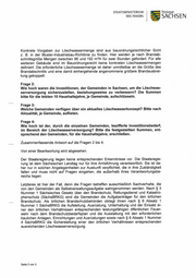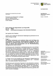 STAATSMINISTERIUM Freistaat DES INNERN SACHSEN Konkrete Vorgaben zur Löschwassermenge sind aus bauordnungsrechtlicher Sicht z. B. in der Muster-Industriebau-Richtlinie zu finden. Hier werden je nach Brandab- schnittsgröße Mengen zwischen 96 und 192 m?/h für zwei Stunden gefordert. Für alle weiteren Gebäude sind im Bauordnungsrecht keine konkreten Löschwassermengen definiert. Die erforderliche Löschwassermenge ist daher unmittelbar an die Größe des Brandabschnitts und eine damit einhergehende angenommene größere Brandausbrei- tung gekoppelt. Frage 2: Wie hoch waren die Investitionen, der Gemeinden in Sachsen, um die Löschwas- serversorgung sicherzustellen, beziehungsweise zu verbessern? Die Summen bitte für die letzten 10 Haushaltsjahre, je Gemeinde, aufschlüsseln. Frage 3: Welche Gemeinden verfügen über ein aktuelles Löschwasserkonzept? Bitte nach Aktualität, je Gemeinde, auflisten. Frage 4: Wie hoch ist der, durch die einzelnen Gemeinden, bezifferte Investitionsbedarf, im Bereich der Löschwasserversorgung? Bitte die festgestellten Summen, ent- sprechend den Gemeinden, für die Haushaltsjahre, erschließen. Zusammenfassende Antwort auf die Fragen 2 bis 4: Von einer Beantwortung wird abgesehen. Der Staatsregierung liegen keine entsprechenden Erkenntnisse vor. Die Staatsregie- rung ist dem Sächsischen Landtag nur für ihre Amtsführung verantwortlich. Sie ist da- her nur in solchen Angelegenheiten zur Auskunft verpflichtet, die in ihre Zuständigkeit fallen und muss nicht auf Fragen eingehen, die außerhalb ihres Verantwortungsbe- reichs liegen. Letzteres ist hier der Fall, denn die Fragen betreffen ausschließlich Sachverhalte, die von den Gemeinden als Selbstverwaltungsaufgabe wahrgenommen werden. Nach § 3 Nummer 1 Sächsisches Gesetz über den Brandschutz, Rettungsdienst und Katastro- phenschutz (SächsBRKG) sind die Gemeinden die Aufgabenträger für den örtlichen Brandschutz. Als örtlichen Brandschutzbehörden obliegt ihnen nach $ 6 Absatz 1 Nummer 1 SächsBRKG die Aufstellung, Ausrüstung, Unterhaltung und der Einsatz ei- ner den örtlichen Verhältnissen entsprechenden leistungsfähigen öffentlichen Feuer- wehr nach dem Brandschutzbedarfsplan und die Ausstattung mit den erforderlichen baulichen Anlagen, Einrichtungen und Ausrüstungen sowie nach 8 6 Absatz 1 Nummer 4 SächsBRKG die Sicherstellung einer den örtlichen Verhältnissen entsprechenden ausreichenden Löschwasserversorgung. Seite 2 von 3