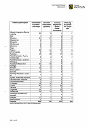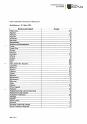 STAATSMINISTERIUM Freistaat DES INNERN SACHSEN Quelle: Fachverfahren ADVIS des LK Mittelsachsen Geduldete zum 31. März 2022: Staatsangehörigkeit Anzahl Afghanistan 57 Ägypten 2 Albanien 10 Algerien 9 Armenien 2 Äthiopien 4 Bangladesch 1 Bosnien und Herzegowina 8 China 7 Costa Rica 1 Eritrea 7 Gambia 1 Georgien 21 Ghana 2 Guinea 4 Indien 82 Irak 89 Iran, Islamische Republik 25 Jordanien 2 Kamerun 17 Kosovo 31 Libanon 53 Libyen 18 Marokko 21 Mazedonien 3 Montenegro 2 Myanmar 2 Niger 1 Nigeria 24 Ohne Angabe 3 Pakistan 35 Palästinensische Autonomiebehörde 2 Palästinensische Gebiete 1 Russische Föderation 56 Senegal 2 Serbien 9 Sierra Leone 1 Somalia 14 Sonstige Asiatische Gebiete 1 Syrien, Arabische Republik 11 Seite 3 von 9