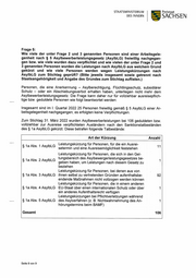 STAATSMINISTERIUM Freistaat DES INNERN SACHSEN Personen mit Aufenthaltserlaubnis zum 31. März 2022: Einrichtung Anzahl Gemeinschaftsunterkunft: 04720 Döbeln, Friedrichstraße 6 09599 Freiberg, Chemnitzer Straße 52 09599 Freiberg, Chemnitzer Straße 1 09661 Striegistal, Zur Wiesenmühle 5 09328 Lunzenau, Schillerstraße 0 Wohnprojekt: 04720 Döbeln, Friedrichstraße 0 09669 Frankenberg, Gutenbergstraße 7 09669 Frankenberg, Meltzerstraße 09661 Hainichen, Ottendorfer Hang 27 04736 Waldheim, Hauptstraße 15 GSQ-Wohnungen 40 Privatwohnungen Keine Angabe möglich, da i. d. R. Rechtskreiswechsel zum SGB Il Gesamt 102 *Hinweis: Diese Personen wohnen außerhalb des mit dem Betreiber abgeschlossenen Vertrages noch in der Gemein- schaftsunterkunft und werden nicht auf die Kapazitäten angerechnet. Von der weiteren Beantwortung wird in Bezug auf die im I. Quartal 2022 jeweils ent- standenen Kosten abgesehen. Die Informationen liegen der Staatsregierung nicht vor. Eine Nachfrage beim Landkreis Mittelsachsen hat ergeben, dass eine fiskalische Tren- nung der Leistungen von Asylbewerbern und Geduldeten bzw. vollziehbar zur Ausreise verpflichteten Personen im Fachverfahren nicht erfolgen kann. Eine Unterscheidung wird lediglich nach Leistungsempfangern von Grundleistungen nach § 3 AsylbLG (§ 1a AsylbLG wird hier mit abgebildet) und Analogleistungen nach § 2 AsylbLG sowie nach innerhalb und außerhalb von Einrichtungen vorgenommen. Um die tatsächlich entstandenen Kosten der Sozialleistungen für den erfragten Perso- nenkreis zu ermitteln, müssten die Akten der 1.623 Geduldeten sowie der Personen, welche lediglich im Besitz einer Bescheinigung über den vorübergehenden Aufenthalt ohne amtliches Dokument (vollziehbar ausreisepflichtig) sind, händisch gesichtet wer- den. Eine ähnliche Verfahrensweise müsste bei den Betreiberkosten angewandt wer- den, da die monatlichen Abrechnungen nicht gesondert für jeden einzelnen Leistungs- berechtigten erfolgen. Der Landkreis Mittelsachsen hat die Beantwortung der Frage aufgrund des damit verbundenen Aufwandes abgelehnt. Seite 7 von 9