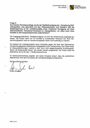 STAATSMINISTERIUM Freistaat DES INNERN SACHSEN Frage 2: Auf welcher Rechtsgrundlage wurde der Stadtteilrundgang der „Vernetzung Süd“ videografiert, was geschieht mit den Videoaufnahmen und inwiefern hält die Staatsregierung es für verhältnismäßig einen friedlichen Rundgang mit einer überschaubaren Teilnehmer*innenzahl zu videografieren, vor allem auch ohne Kontakt zu den Ansprechpersonen aufzunehmen? Der fragegegenständliche „Stadtteilrundgang“ ist nicht als Versammlung angezeigt ge- wesen. Die Polizei nahm vor Ort Kontakt zu anwesenden Personen auf. Eine Ver- sammlungsleiterin oder ein Versammlunggsleiter waren nicht ausfindig zu machen. Es bestand der Anfangsverdacht eines Verstoßes gegen die nach dem Sächsischen Versammlungsgesetz bestehende Anzeigepflicht einer Versammlung. Die Polizei fertig- te Videoaufzeichnungen, welche in dem noch nicht abgeschlossenen Ermittlungsver- fahren als Beweismittel dienen. Sie werden derzeit ausgewertet. Die Polizei stützt die Maßnahme auf $ 163 Abs. 1 Strafprozessordnung. Im Sachzusammenhang ergeben sich keine Hinweise darauf, dass die polizeilichen Maßnahmen nicht dem Grundsatz der Verhältnismäßigkeit entsprachen. Mit freundlichen_Grüßen ML dhs Armin Schuster Seite 3 von 3